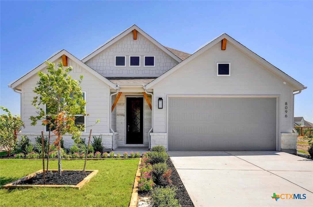 Reece Homes «The Julia II» plan is now available in Mission Ranch! Tall ceilings and a wood-burning fireplace will surely captivate with its comfortable and stylish features. Custom cabinetry, GE stainless-steel appliances, a farmhouse sink, quartz countertops, and a butler’s pantry create a kitchen that’s not only ready for prepping but enjoying! A luxury-sized Primary bedroom leads you into an equally beautiful En-suite. Double vanities, a walk-in shower, and a large soaking tub are waiting to help you unwind after a long day. Expansive walk-in closet with the laundry room conveniently located nearby. Two additional bedrooms with their own baths are located downstairs for maximum flexibility. Upstairs opens to a bright, welcoming flex space with a full bathroom! A covered patio showcases an outdoor kitchen, the perfect place to enjoy a meal while watching the sunset. Indulge in the community’s fantastic amenities, including a gym, sports courts, walking paths, ponds, and even a community pool for hot summer days. Located near Texas A&M, shopping, dining, schools, and parks, this home offers the ideal balance of tranquility and accessibility. (Photos are of actual house in actual stage of construction)