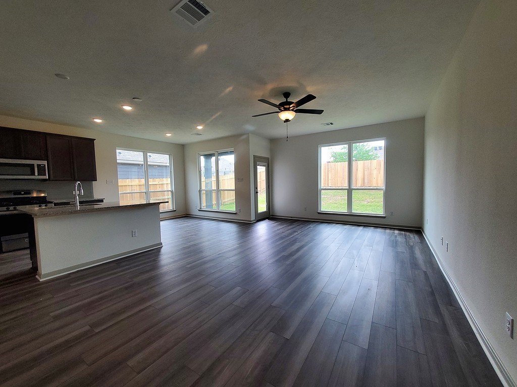 Property Description: This four-bedroom, two bath home is a great option for those looking for more bedrooms without a second story! You won?t believe your eyes as you walk into the great space that is the open concept living room, dining room, and kitchen. With all of its wonderful features, to include walk-in closets, granite countertops, and corner kitchen with island, you are sure to love this home! Additional options included: Stainless steel appliances, integral miniblinds in the rear door, two exterior coach lights, kitchen is prewired for pendant lighting, and a dual primary bathroom vanity.