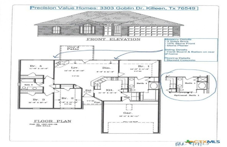 Property Description: Great looking 4/2/2 setting on a corner lot in Goodnight Ranch. The home has rustic stained concrete flooring throughout, rounded corners and energy efficient tilt sash windows. The kitchen has a bar top which opens the kitchen to the living area and features custom wood cabinets, GRANITE KITCHEN COUNTER TOPS, stainless steel appliances(glass top range, dishwasher and a microwave/vent hood) Master bath has a double sink vanity, garden tub and a separate shower with cultured marble surround. Homes comes with PRIVACY FENCE, SPRINKLER SYSTEM and full yard sod. OUR NEW SMART HOME features controlloing locks, doorbell camera, garage door opener, thermostat and some lights all by using your cellular device!!