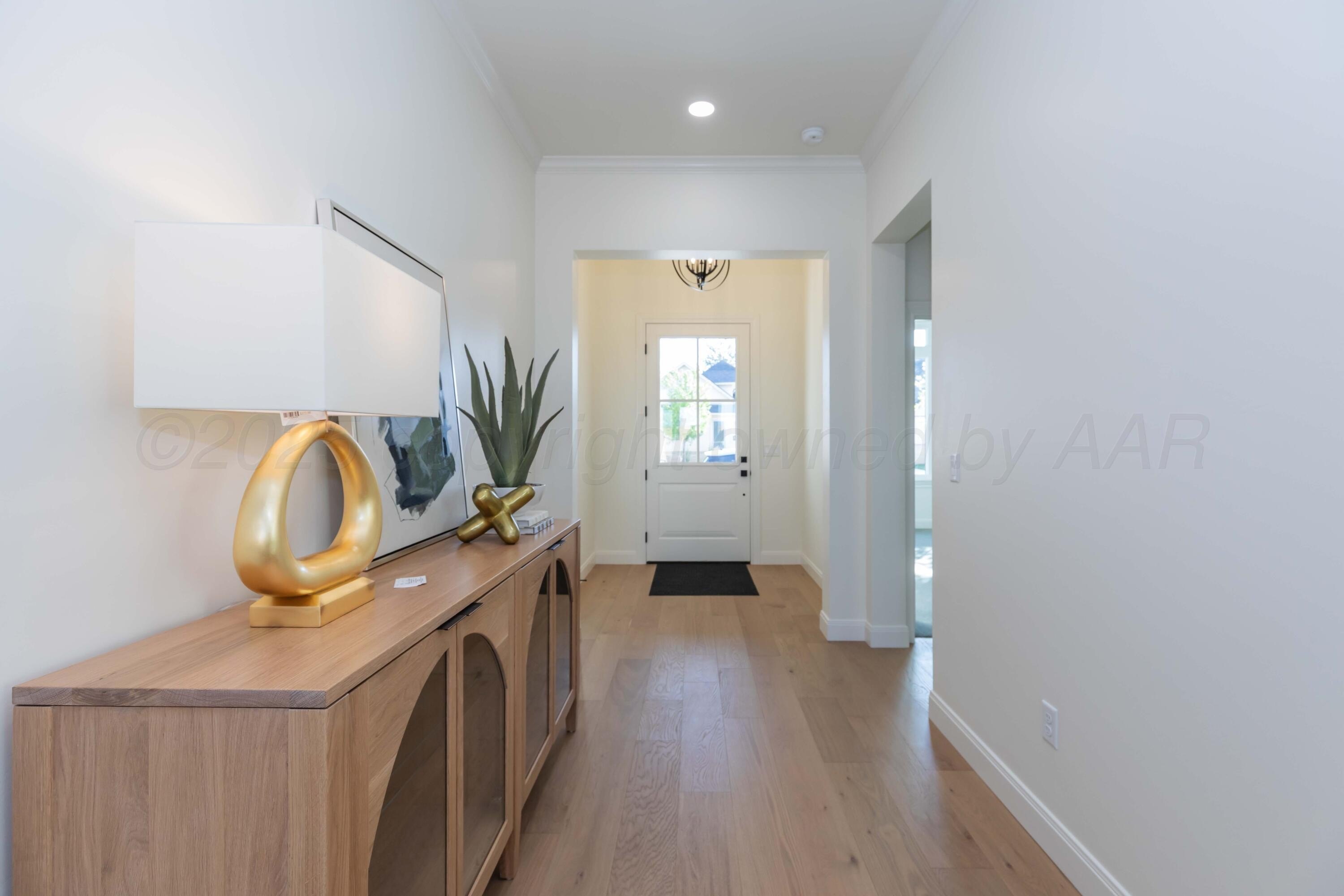 Property Description: Stunning new patio/garden home built by Stately Homes in The Trails of Tascosa Golf Club, a secure gated community. Gallery foyer, kitchen, dining and family space will impress with its elegant paint and light oak-wood flooring, beamed cathedral ceiling and beautiful stairway leading up to a private bedroom and bath. Isolated primary suite features oak flooring, beamed cathedral ceiling, luxurious bath with separate shower, soaking tub, large quartz vanity tops and enormous closet with double-door passageway into the utility/mudroom. Dreamy island kitchen has bar seating along with super sharp quartz counter tops. LG dark stainless appliances include a 5-burner gas cooktop, fridge, oven and microwave. Family living has quartz surrounded fireplace flanked by built-ins and looks out to a large patio with 2nd fireplace, private backyard with 7" board-on-board capped fence and retaining wall planter. A security system has been installed. Energy-saving foam attic insulation includes garage. Builder provides a 10-year StrucSure Warranty. Golfing, tennis, pickle ball, swimming, and dining are all available (nearby new activity center is a big attraction). Whether a golfer or not, this is a must-see home with its perfect floor plan and attention to detail.