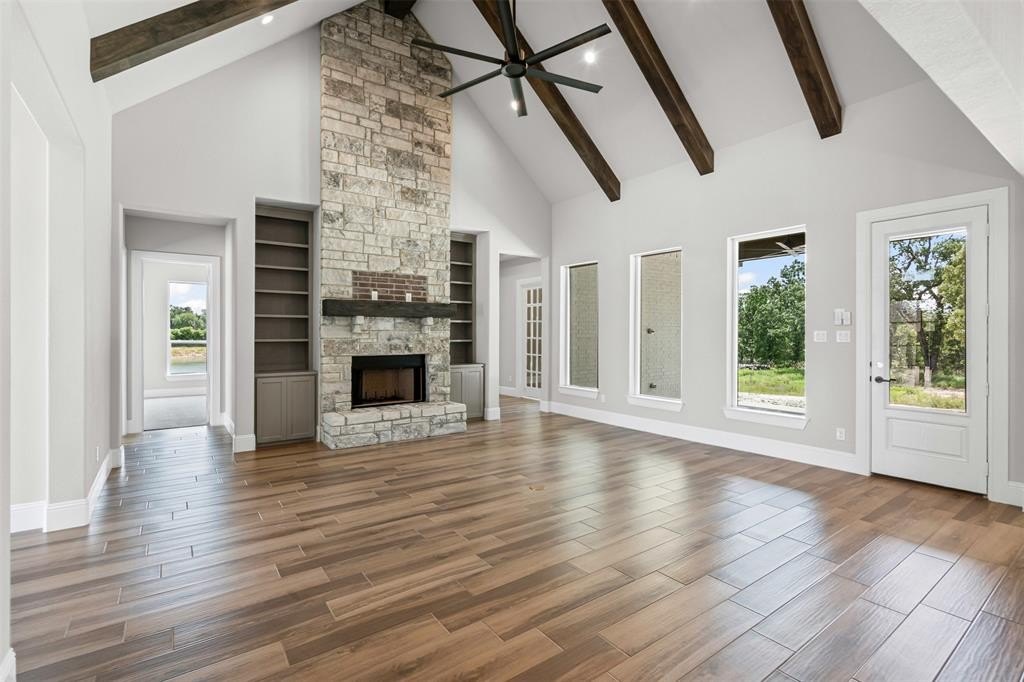 Property Description: BUYERS TAKE ADVANTAGE OF a $20,000 BUILDER INCENTIVE! Waterfront Luxury in Weatherford's Prestigious Estancia! Welcome to this breathtaking waterfront home. Situated on a beautifully treed, landscaped and sprinklered acre, This turnkey showpiece offers a rare combination of elegance, comfort & modern luxury all with stunning water views & a serene cul de saq location. Step through grand wrought iron double doors into an open, light filled layout featuring soaring ceilings, rich trimwork, and elegant throughout. The expansive living room is anchored by a striking stone fireplace, custom built-ins and a wall of windows that frame the scenic backyard & fill the space with natural light. Designed for everyday living & entertaining the chef's kitchen boasts quartz countertops, custom cabinetry, KitchenAid appliances, a gas cooktop, double ovens and an oversized island with breakfast bar seating- perfect for hosting gatherings. The private primary suite offers a spa like retreat with a massive walk in shower, luxurious finishes and an oversized custom closet. Secondary bedrooms are split for added privacy, Stately home office with french doors, Energy efficiency was top of mind in construction, with spray foam insulation throughout. Step outside to a large covered patio where you can relax and enjoy peaceful water views, quiet evenings and spectacular Parker County sunsets. All this just minutes from Weatherford's dining, shopping & schools. This home is the total package!