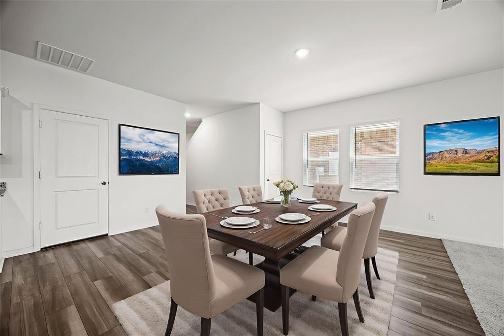 The laundry room comes equipped with a washer and dryer, and the garage provides additional storage with convenient overhead racks. Step outside to enjoy a generous, fenced-in backyard that’s perfect for pets, play, or simply unwinding under the stars. Solar screens on the front of the home help enhance energy efficiency while keeping your living spaces cooler in the warmer months.