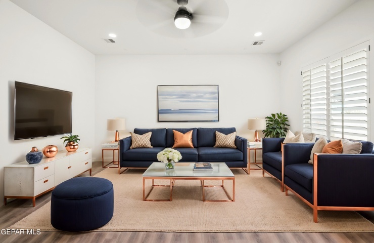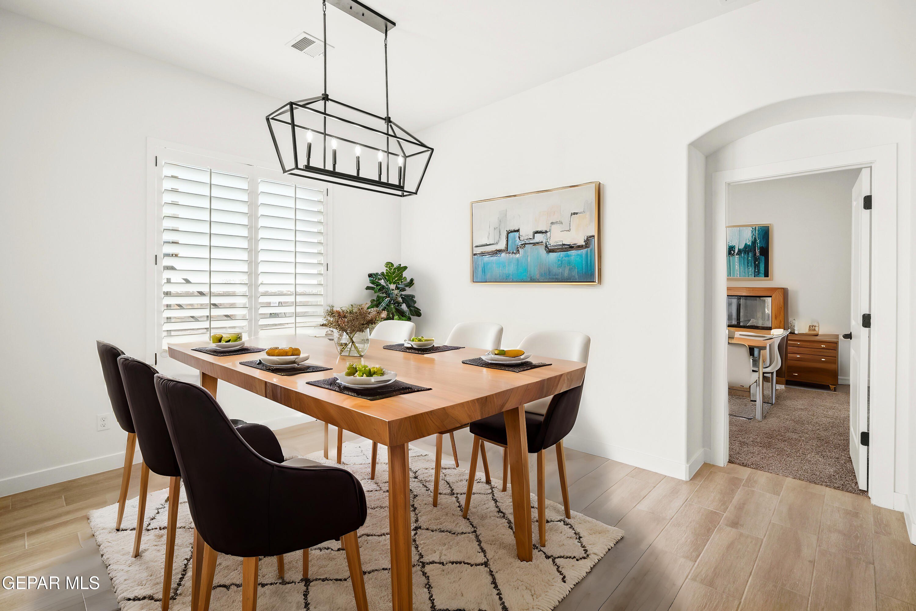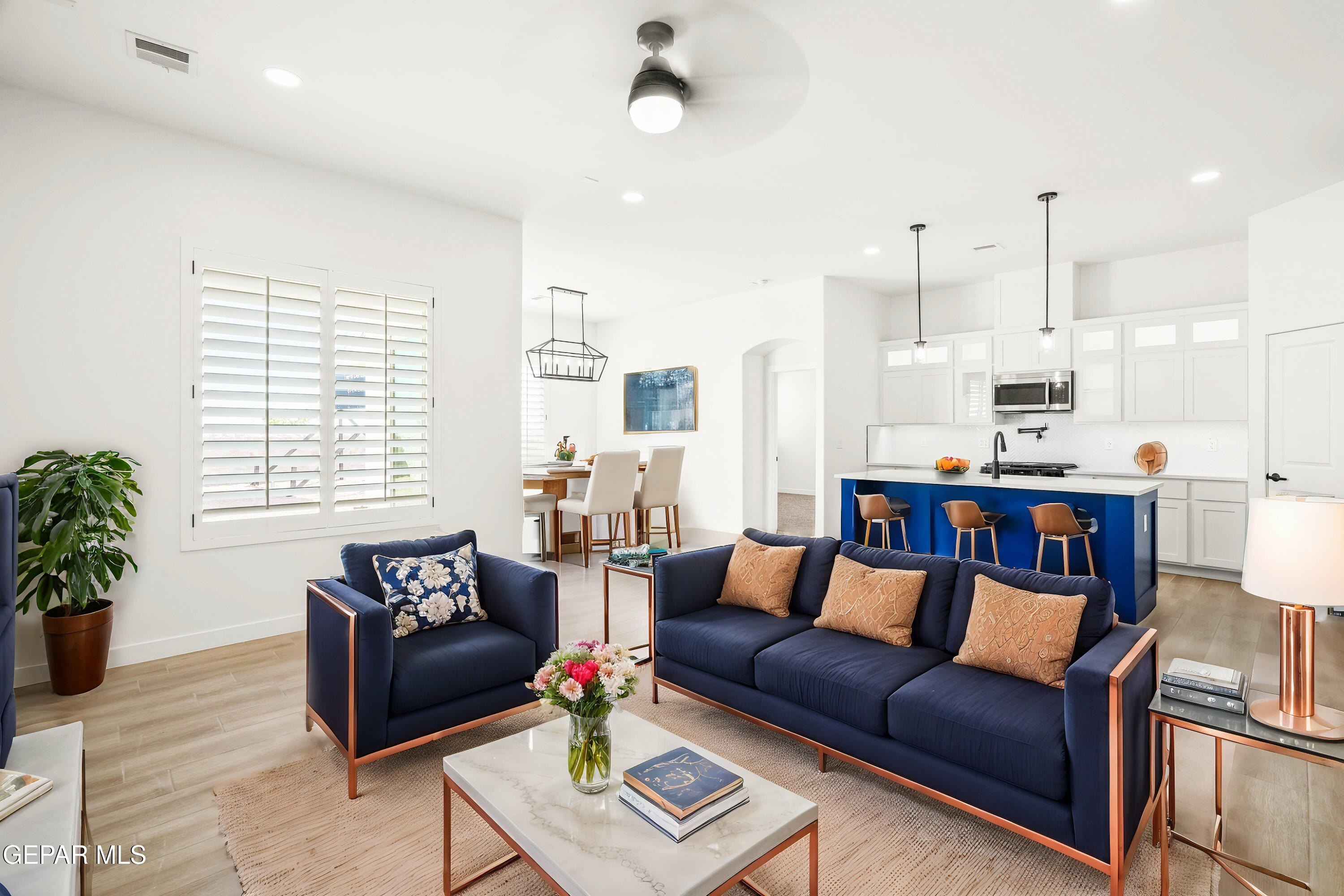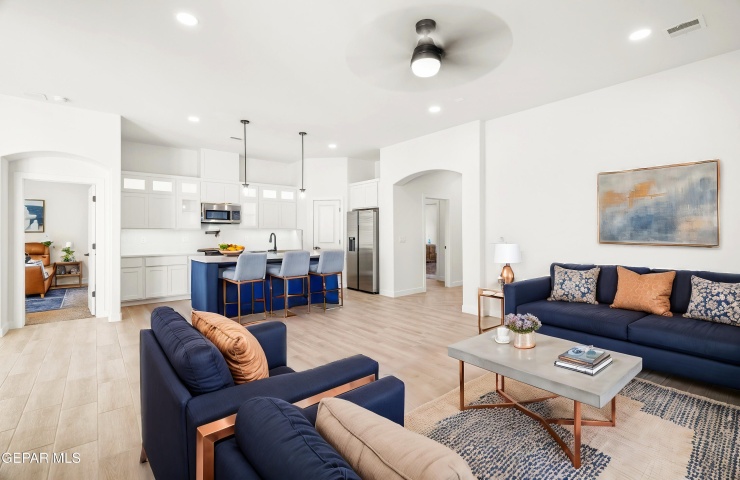 Property Description: Experience the elegance of the Cap Rock II Spanish floor plan, a premier design in the Paseo Del Este at Mission Ridge community of East El Paso. This stunning 3-bedroom, 2-bathroom residence combines superior design with top-notch construction features: High Efficiency: Enjoy the benefits of spray foam insulation in living areas and garage, along with a 14 SEER HVAC system. Sophisticated Details: Admire the finished plywood cabinets with decorative lighting and stylish window shutters. Spacious Interiors: Benefit from the open feel with impressive 10-foot ceilings throughout the entry, living room, dining area, and kitchen. This home offers remarkable value and a unique opportunity for all buyers. Contact us today to schedule your appointment.
