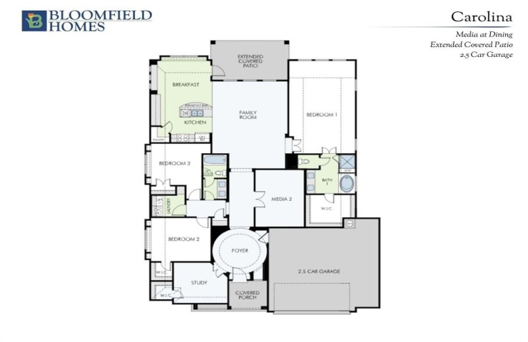 Property Description: NEVER LIVED IN NEW HOME! NOW Move-In Ready! The Carolina floor plan by Bloomfield Homes is the kind of home that makes an entrance and keeps delivering around every corner—it’s a single-story design with thoughtful upgrades that give it presence and personality. From the street, the brick-and-stone exterior and tall arched entry pull you in, while the 8' front door sets the stage for what’s inside. Step through the rotunda foyer and you’re greeted by a layout that balances openness with defined spaces—a Study with glass doors upfront, a Media Room tucked in for movie nights, and a Family Room that flows effortlessly into the Kitchen and Breakfast Nook. The Deluxe Kitchen is all about function meeting style, with upgraded lighting, quartz counters, custom cabinetry, a wood vent hood, pot-and-pan drawers, and built-in stainless appliances. Flooring matters, and here you’ll find wood-look tile running throughout the common areas, blending durability with a warm, upscale look. The Primary Suite is more retreat than bedroom, complete with a spa-style bath featuring dual vanities, a soaking tub, a glass-enclosed shower, and a walk-in closet you won’t outgrow. Secondary bedrooms are generously sized, each with its own walk-in closet, and smartly placed to offer privacy. Outdoor living gets just as much attention with an extended covered patio, upgraded exterior lighting, and a fully landscaped yard. Add in practical touches like blinds, gutters, and a roomy 2.5-car garage, and this home becomes as easy to live in as it is beautiful. At just the right size with just the right upgrades, the Carolina brings modern comfort and timeless style together under one roof, making it ready to impress at Silo Mills.