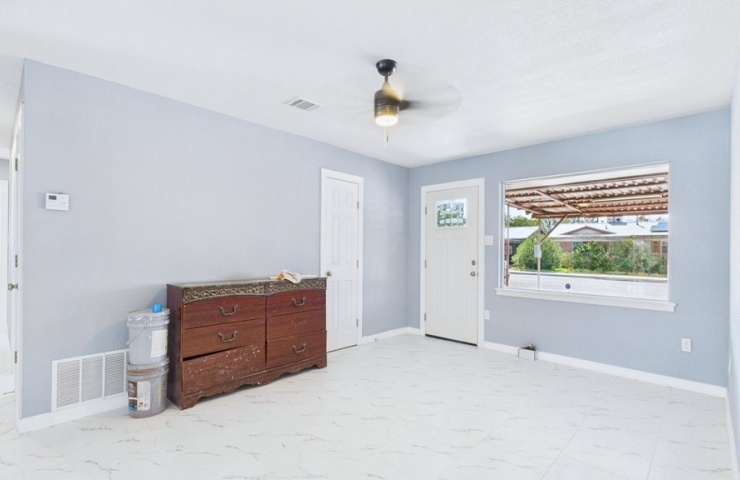 Property Description: Welcome to this BEAUTIFULLY REMODELED 4-bedroom, 2-bathroom home tucked away in a quiet cul-de-sac, offering peace and privacy in a desirable neighborhood. You'll love the new home feel, featuring beautiful upgrades throughout, stylish tile flooring, and brand-new appliances. This layout provides a welcoming flow, leading outside to a large backyard with a nice patio area. The rear parking ensures extra privacy and convenience. This home is move-in ready and designed to impress!