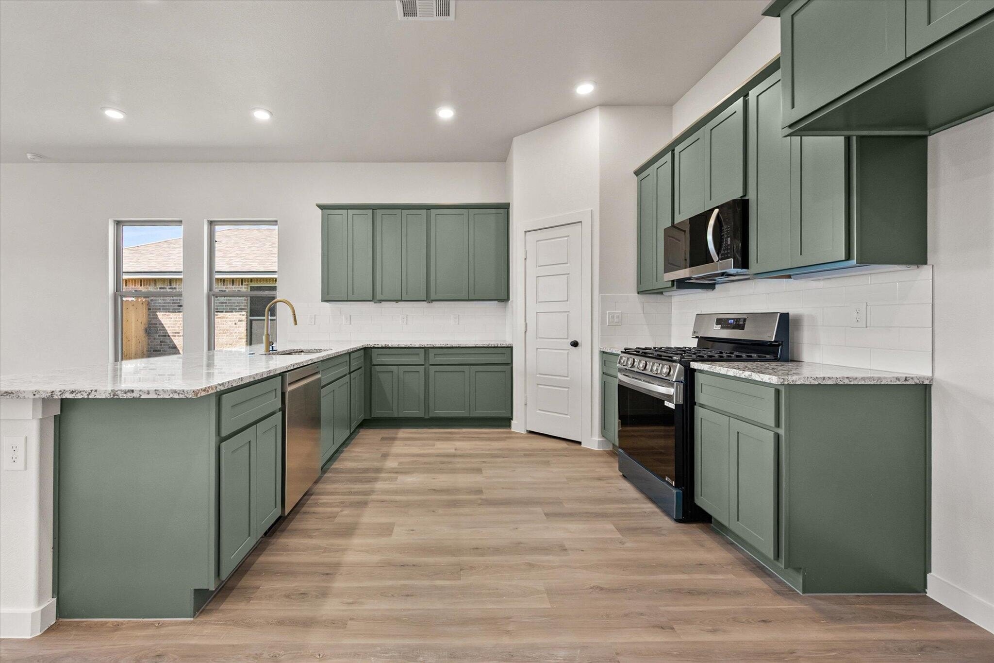 Property Description: Buy NOW and get up to $10,000 Use-It-Your-Way Cash! This beautifully designed home features a classic brick exterior and a covered front entryway, offering both curb appeal and comfort. Inside, luxury vinyl plank flooring flows seamlessly through the open-concept kitchen, living, and dining areas. The kitchen boasts granite or quartz countertops, a spacious peninsula with bar seating, stainless steel appliances, and a large enclosed pantry. Relax in the cozy living room by the corner brick fireplace, adding warmth and charm. The secluded master suite is a true retreat, featuring a drop-in tub, walk-in shower, his and hers vanities, and a walk-in closet with direct access to the utility room. A covered back patio provides a perfect outdoor space to unwind. Premium plumbing and lighting fixtures complete the home's sophisticated design.