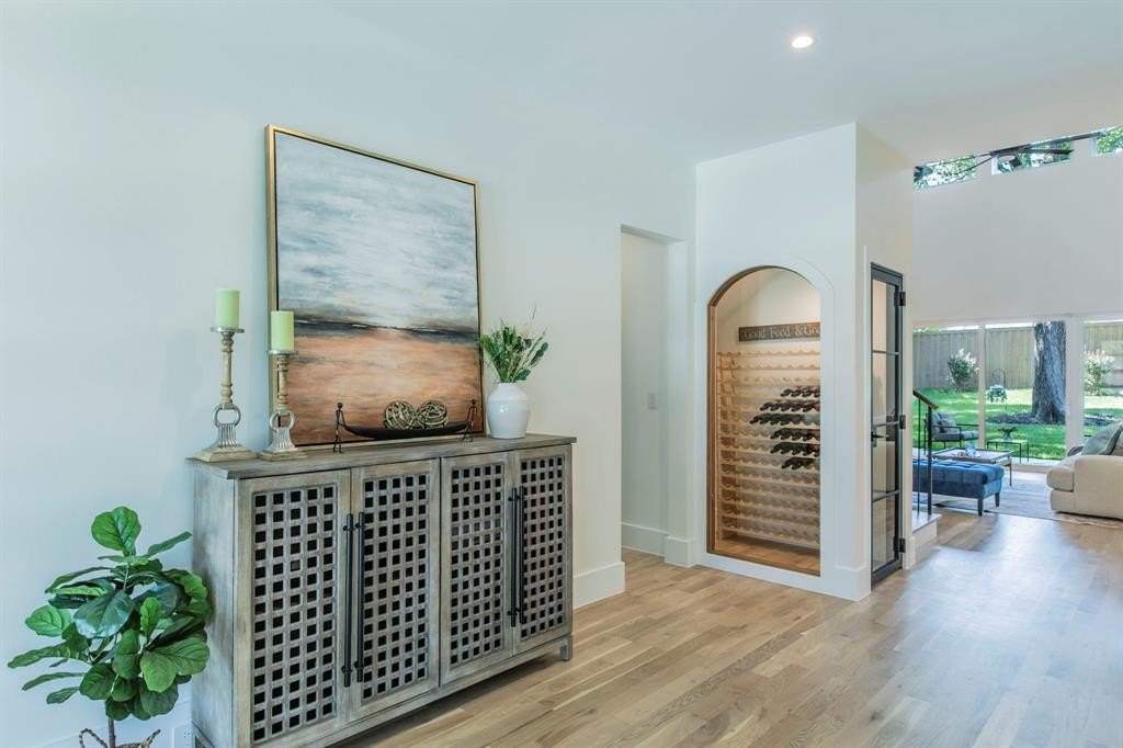 Property Description: Welcome to your custom-built modern farmhouse in Bluffview that blends timeless elegance with cutting-edge comfort. Perched above the street with commanding curb appeal, this residence invites you in through an impressive 8’ pivot iron door into a wide, light-filled hallway that frames views of the oversized, shaded backyard. Groundwork has been done if you decide to build a new pool in the large size back yard. This house is thoughtfully designed to blend functionality with elegance. Every inch of space is used with intention—avoiding excess while embracing simplicity. The result is a warm, Zen-inspired atmosphere that welcomes you the moment you step inside, making it feel like home from the very first breath. Window placement has been meticulously planned to invite natural light into every corner of the home, while thoughtfully minimizing exposure to the intense summer heat of Texas. Adding to the appeal, the home features dual primary suites on each level. The first-floor primary suite is tucked away from the rest of the house. The second-floor master suite offers flexibility, no matter which floor you prefer. Every bedroom has en-suite bath and large walk-in closet. 20 ft High vaulted ceiling in entry way and living room, 8’ solid interior doors on both floors, 18x8 insulated custom garage door, Quartzite Taj Mahal counter tops, white oak hardwood floor, custom cabinetry with led lights and dedicated wine room to name the few outstanding items that make this house unique from the others. Pre wiring Internet cable for high-bandwidth, security, camera and garage door, as well as surround system all connected via smart home automation panel to make home smart and give control to the new owner in or outside of home. Backing up to a greenbelt and the newly constructed city walking trail, complete with workout stations, rest areas, and a playground, this location offers easy access for daily strolls or walks to nearby finest Dallas restaurants and coffee shops.