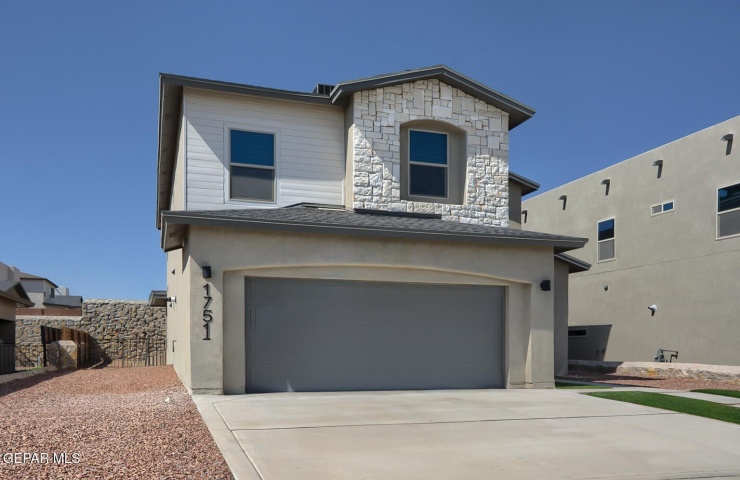 Property Description: NEW HOME - MOVE IN READY!! Introducing the James, a luxurious two-story home featuring a convenient flex room just off the entrance. With a large laundry room and powder room on the main floor, this spacious home offers the perfect blend of functionality and style. The open concept living area, highlighted by an electric fireplace, seamlessly connects the dining area and kitchen, which boasts beautiful granite countertops, stainless steel appliances, and a walk-in pantry. The tiled flooring throughout the entire downstairs, including the bathrooms, adds an elegant touch. Upstairs, the bedrooms, including a primary suite, offer ample space for relaxation. The primary bath is a retreat in itself, offering a separate jetted tub, walk-in shower, dual vanity sinks with framed mirrors, and a super-sized walk-in closet. Step out onto the back covered patio for memorable backyard family gatherings.