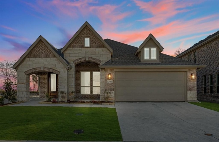 Property Description: BRAND NEW & NEVER LIVED IN. Ready NOW! This Dogwood floor plan from Bloomfield features soft gray cabinets that ground the kitchen, paired with sleek white quartz counters and a pale subway tile backsplash that keeps everything light and crisp. Warm wood floors run through the main spaces, setting off the cool-tone cabinetry and adding a layer of texture. The layout is clean and easy to move through with 3 bedrooms, 2 baths, and a private study tucked just off the entry behind double glass doors. A wall of windows pulls light into the family room, which connects naturally to the dining and kitchen area so the whole space feels open without losing definition. The primary suite leans quiet and calm with carpet underfoot, a deep walk-in closet, a five-piece bath with a frameless glass shower, and a built-in window seat that overlooks the backyard. Secondary bedrooms are spaced along their own hallway with a full bath nearby, giving everyone breathing room. Outside, a large covered front porch faces the street while a deep covered patio stretches across the back, both finished in brick with stone accents that tie in to the elevation. A full sprinkler system and gutters are already in place, and the fenced backyard is wide and level with room to shape it however you want. Every space is simple, functional, and finished in a clean, modern palette that makes the whole home feel bright and fresh. Come check out all this home can offer and learn more about Bloomfield by visiting our model at Anderson Crossing!