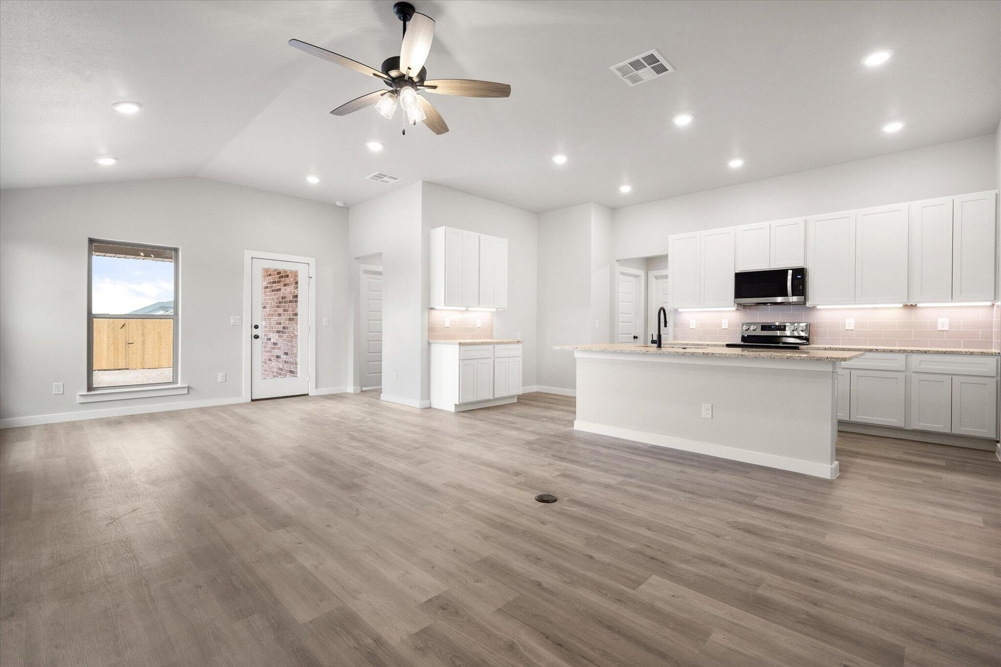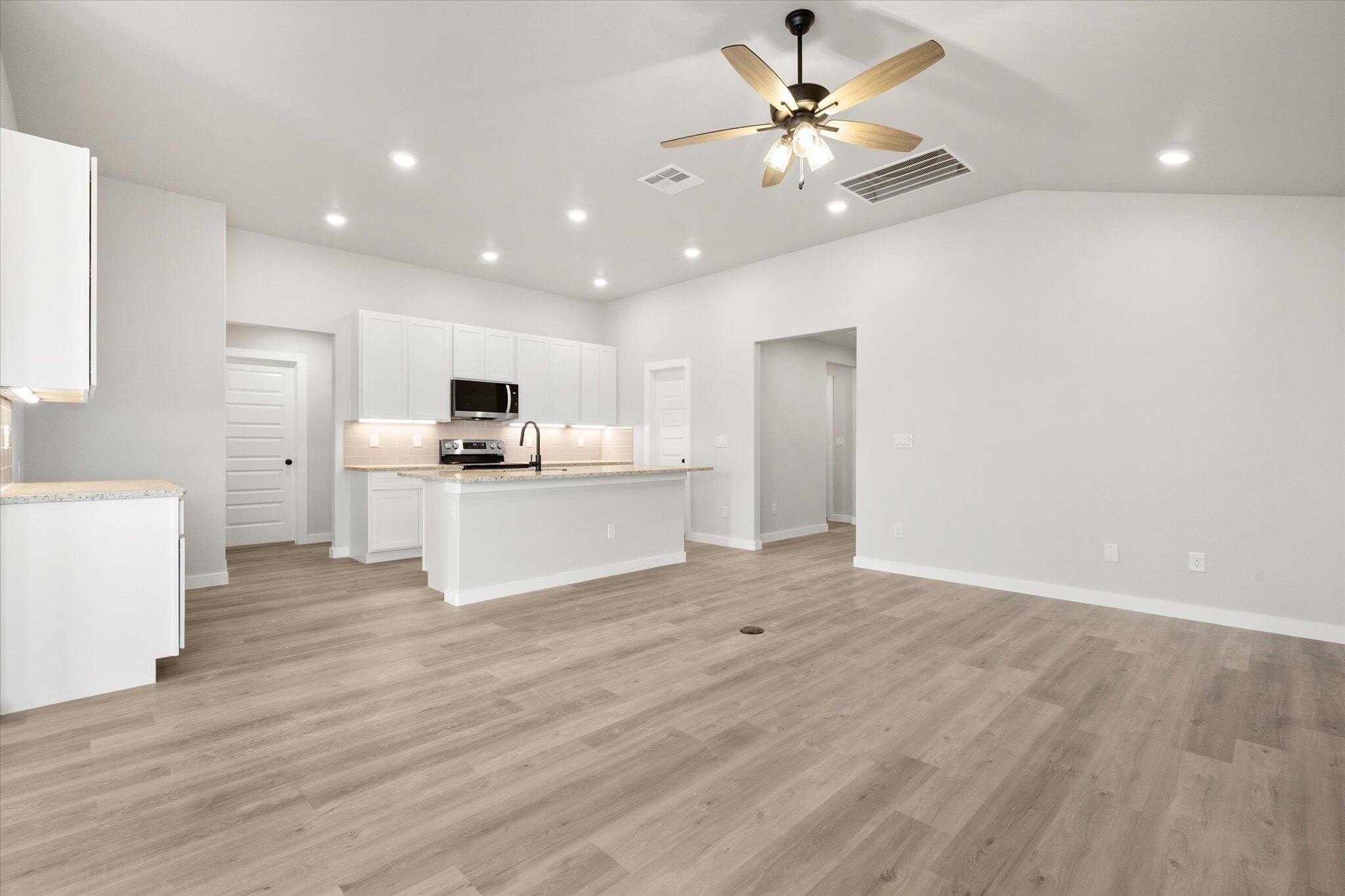 Property Description: Buy NOW and get up to $8,000 Use-It-Your-Way Cash! This beautiful home features a brick exterior with warm cedar accents and a welcoming covered entryway. Inside, luxury vinyl plank flooring flows through the open-concept kitchen, living, and dining areas, creating a modern and inviting space. The kitchen offers granite or quartz countertops, a spacious island with bar seating, stainless steel appliances, and an enclosed pantry for extra storage. The secluded master suite includes a walk-in closet and double vanity, providing a private and relaxing retreat. Enjoy outdoor living on the covered back patio, perfect for entertaining or unwinding. Premium plumbing and lighting fixtures add a touch of elegance to this thoughtfully designed home.