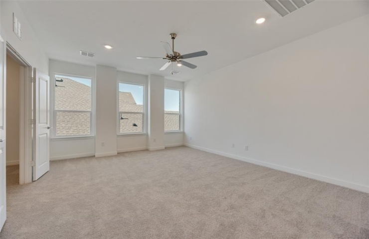 This two-story home has a unique layout that is perfect for families who need space. There are two bedrooms on the first floor, including the owner’s suite in the back of the home and a smaller suite off the foyer. The open living space is beside the owner’s suite and has a back patio. Upstairs are two bedrooms and a versatile bonus room loft.