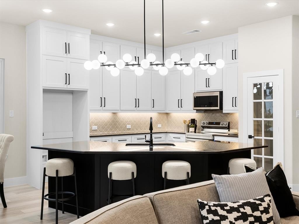 Property Description: Welcome to this brand new home! Discover the ideal combination of elegance and contemporary design. Enter through the stylish modern door into an inviting space featuring wood-look flooring throughout. In the kitchen and dining area, admire the stunning chandeliers and sleek granite countertops, complemented by an abundance of cabinetry and an oversized island. The living room showcases a striking extended accent wall with an electric fireplace, along with custom windows that enhance the overall charm of the home. The master bedroom features a walk in closet, master bath has double sinks, an enclosed shower, shelving for towels, etc. Enjoy the outdoor space, a covered patio and good yard space for all your gatherings! Come and check it out this weekend! Minutes from Retail, Highways and Texas Wesleyan Private University.