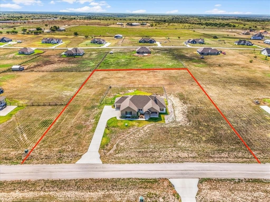 Property Description: This stunning 4-bedroom, 2-bath home by White Tree Custom Homes offers 2,257 sq ft of beautifully designed living space on 2.02 acres. Upon entry, you’re greeted by a bright, naturally lit living space that immediately feels warm & welcoming. Enjoy tile flooring, upgraded stainless steel appliances, quartz countertops throughout, custom cabinetry with crown molding & custom window blinds for a polished, move-in-ready finish. The open-concept layout is bright and inviting, anchored by an eye-catching wood-burning fireplace in the main living area. The kitchen blends style & functionality with a large walk-in pantry, premium finishes & modern fixtures. Bold black finishes in the kitchen and living areas add a contemporary touch while seamlessly blending with the traditional designs of the home. The bedrooms feature luxurious carpeting for added comfort and warmth, creating cozy spaces to unwind. Outdoors, a covered patio overlooks expansive country views, offering endless possibilities for a pool, shop, horses, chickens, or your own private retreat. Every detail—from upgraded hardware and insulation to softly rounded wall edges and enhanced storm windows—showcases the impeccable workmanship this builder is known for. A private water well, plumbing for a water softener, and an aerobic septic system with a 2-year service agreement provide lasting reliability. Buyers will also enjoy the peace of mind of a StrucSure Home Warranty, one of the nation’s premier programs, including a 10-year structural guarantee. Additional highlights include a 3-car garage, pipe-fenced backyard, no HOA, and horse-friendly acreage—offering both comfort and flexibility. Located in Weatherford ISD, Sunset Ridge offers peaceful prairie views just 15 minutes from Weatherford and Granbury, and 20 minutes from Fort Worth. Builder Incentive: Take advantage of a limited-time 4.99% interest rate for qualified buyers using the builder’s preferred lender. Call today!