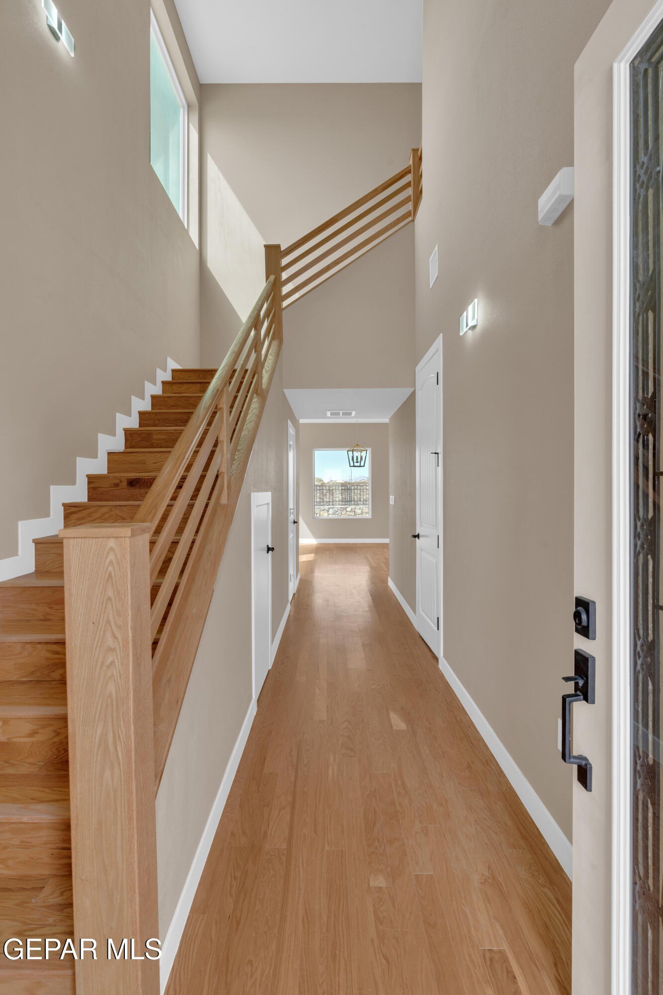 Property Description: Welcome home to your 2-story BUILDER MODEL near The Hospitals of Providence Transmountain--move-in ready today! A perfect upscale, lock-it & leave-it custom home with 1,740 Sq. Ft., 3 bedrooms, 2 .5 bathrooms, a 2 car garage with epoxy painted floor, this ENERGY STAR Certified home epitomizes low monthly expenses, subtle colors & beauty. Enjoy oak wood floors as you enter a welcoming foyer leading to the light-filled family room with impressive 22 foot high soaring ceiling and custom beams & clerestory windows, an open kitchen plus a pantry with a super quartz breakfast bar, upgraded stainless sinks plus electric appliances including: refrigerator, stove, dishwasher & microwave, yards of gorgeous white quartz counters, & custom raised cabinets with matte gold hardware. LOW maintenance landscaping plus a front entry with a classy herringbone patterned driveway adds to the charm of this home! Tankless heater, washer/dryer & auto garage door. Master Suite with designer closet & fab bathroom! Mountain views!