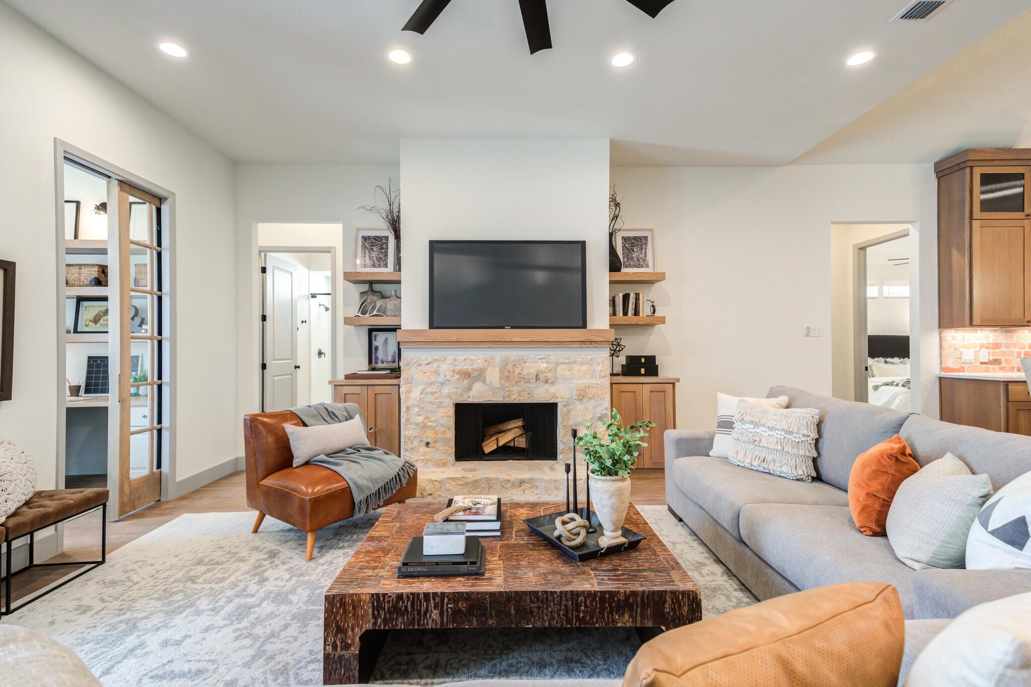 Property Description: Presenting to the ANAHEIM New Construction built by VENTURA HOMES in Enclave at Kelsey Park! Located in South Lubbock & Cooper ISD & zoned to Liberty High, this 4 Bedroom, 3 Bath PLUS dedicated Office, Secluded Bonus Room, wrap-around Outdoor Living Space with Fireplace, perfect for entertaining or relaxing year-round! Walk through the Double Doors into the living Room with a stone fireplace, custom stained built-ins, and floor plug for convenience. The Chef's Kitchen is a standout with white oak stained cabinets, Quartz countertops, 10 Burner Dual Gas Ranges with double ovens, built-in fridge/freezer columns, under-cabinet lighting, and a walk-in pantry. Isolated Primary Suite is a private retreat featuring vaulted ceilings, private patio access, soaking tub, tiled shower with dual shower heads, frameless glass shower door, makeup vanity, and walk-in closet with built-in dresser & 3rd row hanging space. Guest Bedrooms 2 & 3 offer walk-in closets and share a Jack-and-Jill bath, while the Isolated 4th Bedroom with a walk-in shower is ideal for an in-law suite. The Secluded Bonus Room/2nd Living Area opens to the oversized wrap-around covered patio with a corner fireplace, TV connections, & a capped cedar fence with concrete curb! There's even plenty of yard space for a pool! Laundry Room with Sink, ample storage, and a convenient hall closet. Additional features ~ Spray Foam Insulation, 75-GAL Water Heater, loop for water softener, designer hardware & lighting, Custom Faux Blinds, amazing storage throughout, Fully Landscaped with sprinklers & drip, OVERSIZED 2-Car Garage, 1-2-6 Builder Warranty...too much to list! Walk to the 80+ Acre neighborhood park & minutes from Red Feather Golf Course, shopping, dining, Texas Tech & so much more! All you need to do is move in! Come see what the Ventura Homes Difference is all about for yourself!