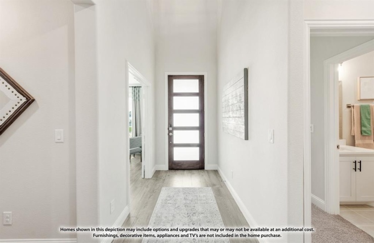 Property Description: NEW! NEVER LIVED IN. Ready December 2025! Welcome to Bloomfield Homes’ Bellflower II, a grand 2-story home where thoughtful design meets timeless detail. The exterior showcases a rich blend of brick and stone, creating a stately presence with an 8’ Warwick front door, brick front porch, and landscaped yard framed by stone edging and a stained wood fence. Inside, the airy foyer opens to a private study enclosed with glass French doors, while upgraded laminate wood floors extend through the entry, dining, study, family room, and kitchen, giving the main level a cohesive flow. The open family area centers around a stacked ledge stone fireplace with a modern box mantel, illuminated by disc and recessed lighting throughout. The Deluxe Kitchen stands out with quartz countertops, upgraded glazed cabinetry, a farmhouse sink with pot filler, stainless steel appliances, pendant and under-cab lighting, and an island wrapped with cabinet skin—all overlooking the breakfast nook and extended covered patio with a gas drop for grilling. Downstairs also includes a secondary bedroom and full bath for guests, while the primary suite offers a serene retreat with a luxury ensuite featuring quartz counters, upgraded floor tile, and separate vanities. Upstairs, the modern railing leads to a spacious game room and a media room pre-wired for surround sound, along with 2 additional bedrooms and a full bath. The 3-car garage with a porte cochere adds both style and convenience, enhanced by dedicated outlets, uplights along the front elevation, and a rear floodlight. With full gutters, blinds, and energy-efficient systems, every corner of this home reflects Bloomfield’s signature craftsmanship. Experience the perfect blend of beauty and function—visit or call Bloomfield Homes today to explore the Bellflower II!