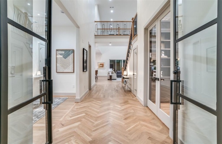 It starts with the street—quiet, established, tucked into Midway Hollow where families walk dogs and neighbors wave from their porches. Inside, the home opens with a sense of care and purpose. The entry sets the tone: clean, warm, and timeless—leading to an airy space that’s uncluttered and comfortable. To the right, a front office with custom built-ins becomes your quiet library or the spot where good ideas happen. Across the hall, a formal dining room is ready for holiday dinners or casual takeout with close friends. An open floor plan connects kitchen, living, and breakfast nook into one flowing, functional space. The living room takes center stage with 30-foot ceilings and a floor-to-ceiling fireplace, flanked by built-ins with open shelves and hidden storage. The kitchen, just left of center, full-height cabinetry, and Viking appliances. Adjacent, the breakfast nook tucks into its own sunny corner—perfect for relaxed mornings or easy dinners. The patio extends living outdoors. The yard is smartly scaled for low maintenance, with room to relax or entertain—complete with hookups for a future built-in grill. The primary suite sits in its own corner of the home, offering privacy and calm. The en-suite bathroom features clean lines, warm finishes, and a layout built for daily comfort. Upstairs, a flexible media room doubles as a playroom, den, or second living space. A front-facing balcony opens just off it, offering a moment of fresh air. Storage is exactly where it should be—under stairs, along the halls, and in corners designed to stay out of your way. This home it’s practical, well-planned, and located in a neighborhood where people put down roots. Whether you're hosting, growing, or settling in, it just makes sense.