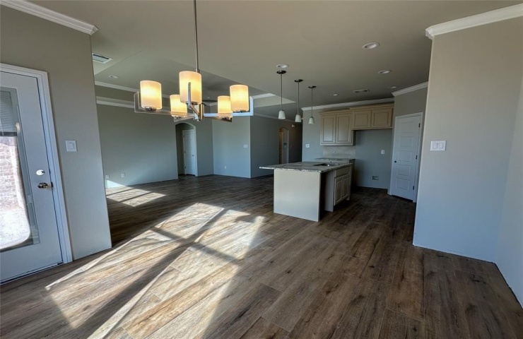 Property Description: NO HOA!!! What other builders consider upgrades Arcadian Select Homes have made them standard features. This beautifully crafted home has a large open kitchen custom cabinetry with 42in uppers large granite island with undermount 50 50 sink and concealed trash cabinet. The stainless Whirlpool appliances make this kitchen a chefs dream Elevated ceilings with crown molding in living area single stage in kitchen, dining, entry and primary. Oversized 5.25 baseboards throughout. Ceiling fans with light in living and primary, guest bedrooms are wired as well. Luxury water resistant vinyl plank flooring in the main areas and hallway. Full security system. The grand entry way has a Speak Easy wood grain front door. Energy efficient windows throughout. Primary bathroom has fully tiled showers with accent flooring. The exterior is beautifully designed with brick and decorative stone. An insulated 3 car fully finished garage offers plenty of room and has neatly textured walls and baseboards. Encapsulated foam insulation for highest energy efficiency. A full sprinkler system takes care of the front landscaping 2 trees as well as the nice size backyard. Corner lot.