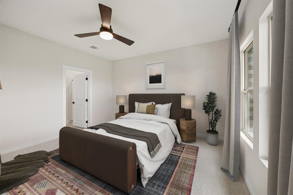 Property Description: Move in ready! This Tigris II plan offers beautiful laminate flooring in the entry, great room, kitchen and dining area. Open concept with a bright, welcoming kitchen that showcases textured white quartz countertops, light stain shaker cabinets, black metal shade pendant lighting, and stainless steel appliances. The open-concept layout connects all living areas, adding to the home's spacious feel. Enjoy family time upstairs in the loft, which conveniently links to three secondary bedrooms. A covered patio extends off the great room, making for perfect outdoor family get-togethers.