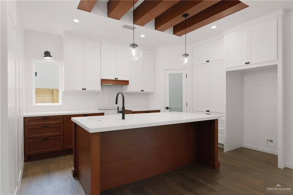 Property Description: This newly built 3-bedroom, 2.5-bathroom home with a 2-car garage offers over 1,800 sq ft of thoughtfully designed living space. From the moment you walk in, the open layout draws attention to its clean lines, elegant porcelain tile flooring, and abundance of natural light. The kitchen serves as the centerpiece, featuring quartz countertops, extensive cabinetry, and a spacious island that seamlessly connects to the dining and living areas — ideal for gatherings and daily living. The primary suite provides a quiet retreat, complete with a double vanity, walk-in shower, and a large walk-in closet. Every detail reflects quality and comfort, from the modern finishes to the smart floor plan that balances functionality with style. Whether relaxing indoors or entertaining guests, this home offers the perfect setting for contemporary living. Located in the community of Los Lagos, home to the new Guerlian Plaza & minutes from Robert & Janet Vacker Stadium, home of the UTRGV Vaqueros.