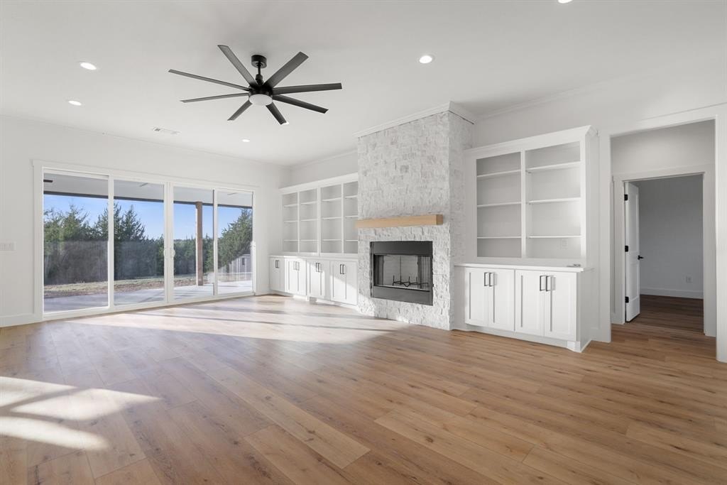 Step inside to find an inviting open floor plan highlighted by light engineered hardwood floors, a stone fireplace, and large glass doors that frame the natural beauty outside. The gourmet kitchen features stainless steel appliances, custom cabinetry, and a spacious island perfect for entertaining.