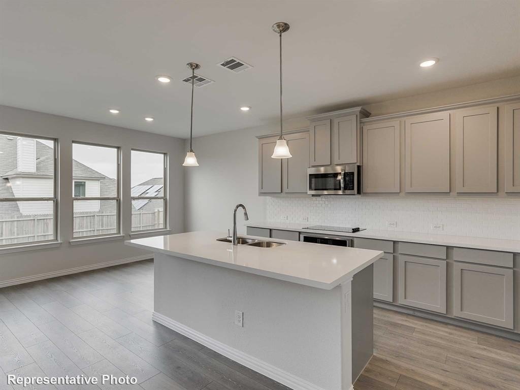 Property Description: The Hickory floor plan encompasses an impressive 2,487 square feet of thoughtfully designed living space, offering expansive, open areas ideal for entertaining family and friends. This inviting two-story home is celebrated for its bright and airy open-concept layout that enhances natural light throughout the living areas. The kitchen serves as the heart of the home, featuring ample storage solutions such as custom cabinetry, generous counter space made from durable quartz, and high-end stainless steel appliances that blend style with functionality. The large center island not only provides additional prep space but also creates a seamless flow into the adjacent dining room and great room, perfect for hosting gatherings. In the owner’s suite, you’ll find a luxurious bathroom complete with a dual-sink vanity, a separate shower with elegant tile detailing, and a spacious garden tub for relaxation. The expansive private closet, thoughtfully designed with three levels of rods and shelves, ensures that storage is both practical and organized. Upstairs two secondary bedrooms offer comfort and convenience, with easy access to a well-appointed full bathroom and a linen closet for additional storage. Situated on a generously sized lot, this home features a covered patio that overlooks the backyard, making it the perfect spot for outdoor entertaining or simply enjoying a peaceful morning coffee.