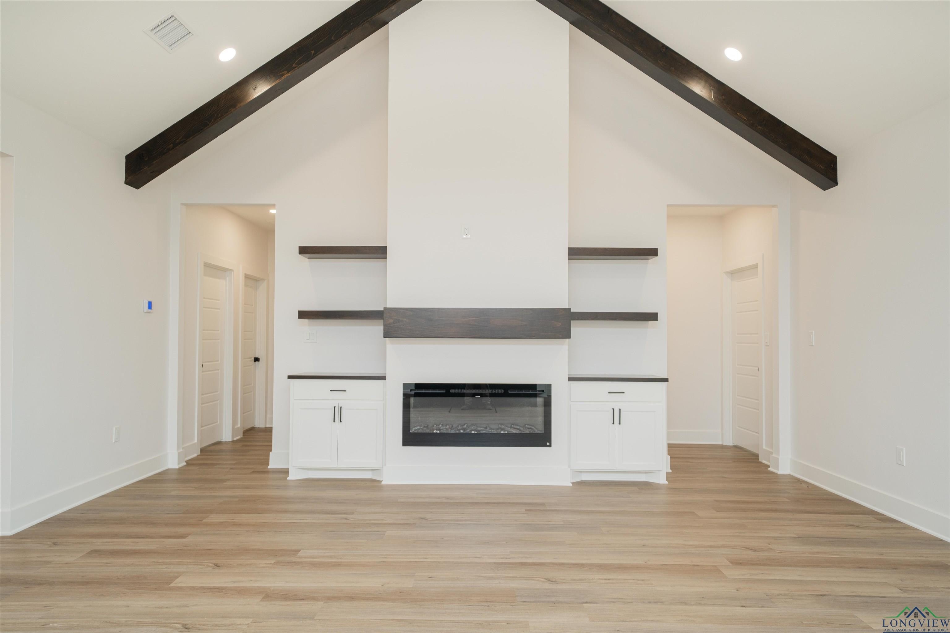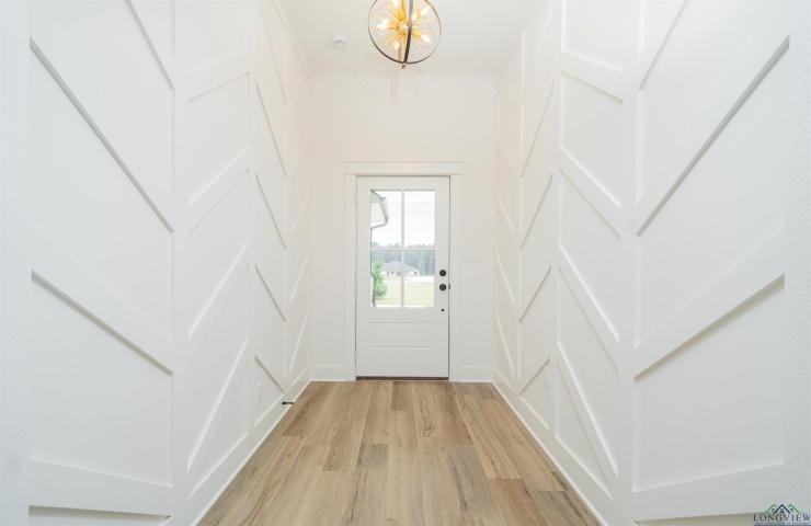 Property Description: Experience the perfect blend of sophistication and rural living in this stunning new construction located in the desirable Meadows subdivision of Tatum ISD. This 4-bedroom, 2-bathroom home offers over 2,000 sq. ft. of thoughtfully designed space, perfectly situated on a full 1-acre lot. Step inside to discover soaring ceilings, unique accent walls, and an abundance of natural light that enhances every room. The open-concept living area showcases striking wood beams, a sleek modern fireplace, and oversized windows that seamlessly connect indoor and outdoor living. The gourmet kitchen is a true centerpiece—featuring custom cabinetry, bold granite countertops with dramatic veining, designer lighting, and a spacious island ideal for entertaining or casual dining. Retreat to the luxurious primary suite with a spa-inspired bathroom complete with a walk-in shower, dual vanities, and a custom-built closet offering ample storage. Three additional bedrooms provide versatile options for family, guests, or a home office. Outside, enjoy a covered patio overlooking your expansive 1-acre lot—perfect for relaxing, entertaining, or designing your dream backyard oasis. Don’t miss this rare opportunity to own a brand-new modern farmhouse in one of Tatum’s most sought-after communities. Schedule your private tour today!