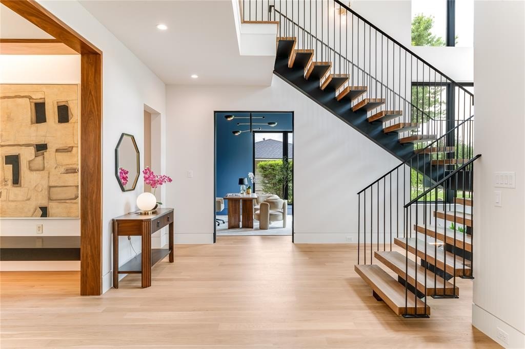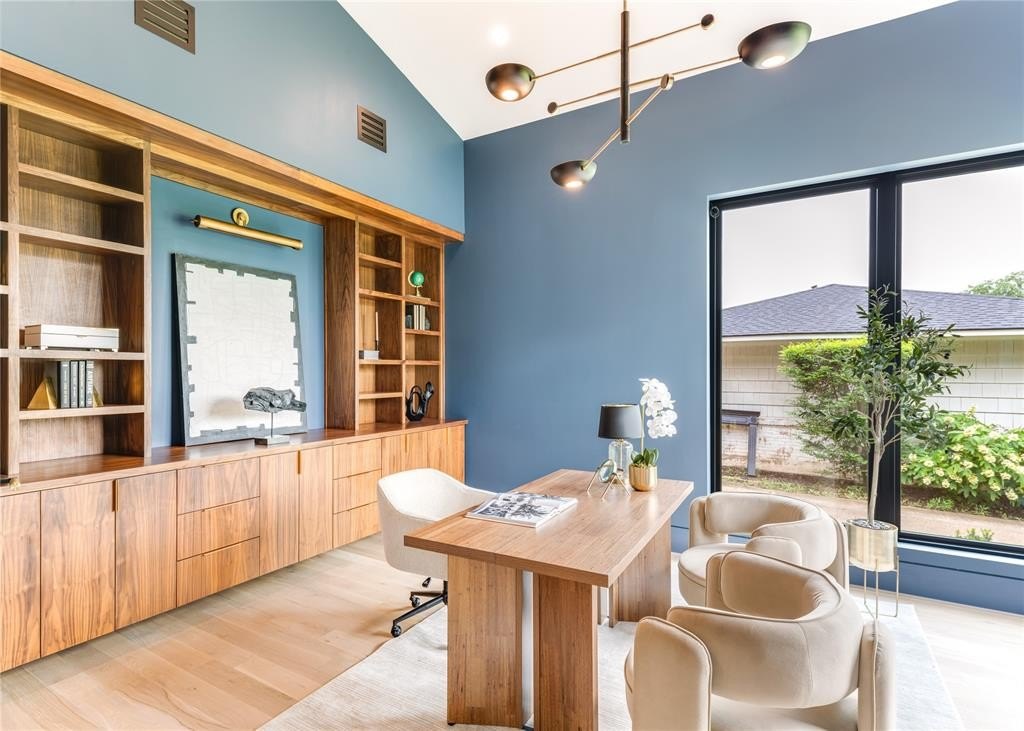 Property Description: Welcome to this stunning new construction offering 5,650 sf, nestled on an oversized .35-acre lot in one of the most coveted areas, the Private School Corridor. This meticulously crafted, mid-century transitional masterpiece, built by renowned Chris Sandlin Homes, offers an unparalleled blend of custom elegance and timeless design, with every detail thoughtfully curated for comfort and luxury. Step inside to find a spacious and inviting open-concept layout that effortlessly merges classic mid-century elements with modern sophistication. The home features all ensuite bedrooms, ensuring each family member enjoys their own private retreat. Two generously sized laundry rooms offer ultimate convenience, while a luxury private office with custom built-ins provides a serene space for work or study. The architectural design pays homage to mid-century modern roots with a subtle nod to the 70's. Custom features like sleek lines, warm wood accents, and large windows that invite natural light into every room, create an atmosphere of relaxed elegance. High-end finishes and craftsmanship are evident throughout, from the curated selection of materials to the seamless flow of the layout. The gourmet kitchen, open to the great room and dining areas, is a chef’s dream, boasting top-of-the-line appliances, custom cabinetry, and a large center island perfect for entertaining. Each room is designed with luxury and function in mind, offering ample space for both families living and entertaining.