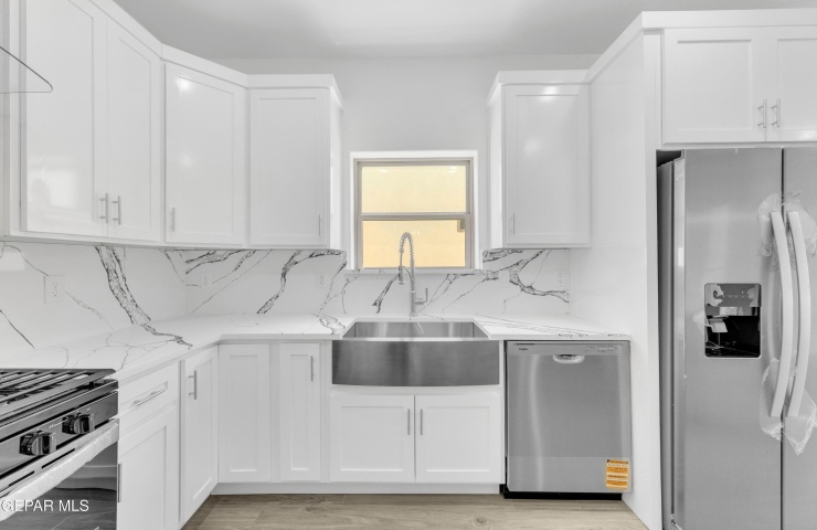 Property Description: Welcome to 871 COUNTRY CLUB in gated Garden Villa Estates! This new home is in move-in condition today. Our1-story unit offers the newest warm contemporary design in the Upper Valley near El Paso Country Club & Tennis West. Unit 1A is sparkling new construction and includes 2 spacious bedrooms, 2.5 refined bathrooms, an open living room/high ceilings, energy efficient windows & a contemporary fireplace with floor to ceiling tile surround, open concept kitchen/ pantry, large custom island quartz counters/backsplash, stainless steel farm sink & appliances: gas stove + glass hood, dishwasher, microwave, refrigerator/freezer and an attached two-car garage + epoxy painted floor & automatic garage openers This unit has 1,733 Sq. Ft. of living space, all tile floors, cool refrigerated air conditioning, extra closets + high wall privacy fencing-all with easy access to Santa Theresa, The Hospitals of Providence at Transmountain, and by Rio Grande Riverpark Trail. xeriscaped front yard-low maintenance!!