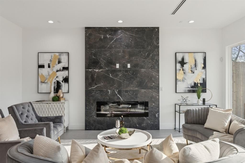 Property Description: Spectacular new construction presented by acclaimed design-build firm Premium Home Design! This gorgeous modern features a spacious open-concept main level with sleek kitchen, living, and dining spaces that combine to create an entertainer's dream loaded with designer touches! Main level also features mud room off entry with custom cabinetry and bedroom or office with ensuite bath with guest access from the main hallway. Timeless contemporary kitchen features quartz counters, waterfall island with seating, black stainless appliances, and gas range. Custom fixtures, spray foam insulation, and LED lighting throughout. Head up the handcrafted oak tread staircase to find an additional loft living area, primary suite with coffee bar, spa inspired bath, and Dallas skyline views from bed through the oversized windows or from your private balcony. 2 large secondary bedrooms up with walk in closets, & third full bath. Walking distance to Mattie Nash-Myrtle Davis Park, schools and just minutes from everything Downtown Dallas and Trinity Groves have to offer!