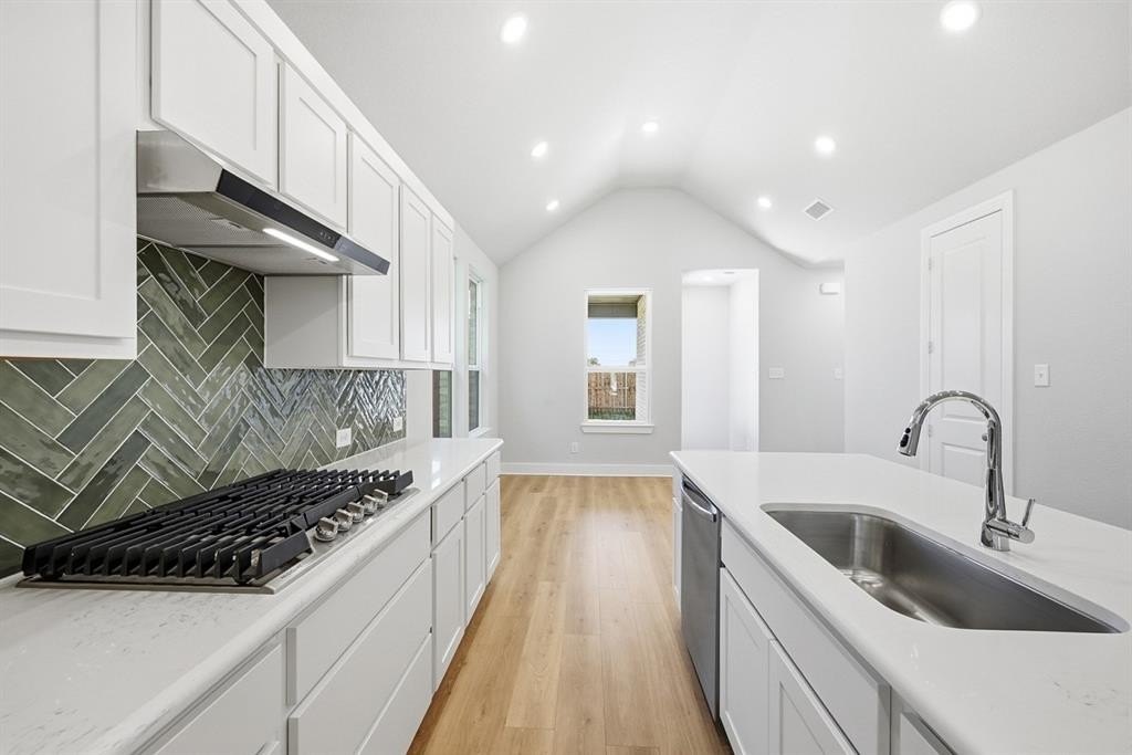 Property Description: Highland Homes presents The Mondrian Plan at Heritage Ranch! This 3 bedrooms, 2 bath home has been one of our most popular plans with vaulted ceilings, 8 foot doors, large windows, and so much more! Luxury Vinyl floors installed throughout the first floors, custom cabinets in the kitchen, and Quartz kitchen countertops!