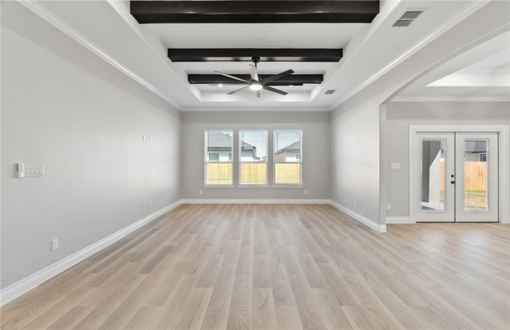Property Description: BEAUTIFUL NEW CONSTRUCTION BY JACKIE HOMES LLC - LOCATED ON THE SOUTHSIDE OF CORPUS CHRISTI. This 4 bedroom, 3.5 bath home offers 2,620 sqft of open living space in CCISD - Creekside Elem, Lexington MS, and veterans Memorial High School. Features include faux wood beamed ceiling, large windows, and a formal dining area. Wood tile through out the home. The kitchen has custom cabinetry, island, farmhouse sink, stainless steel appliances, gas cook top and designer lighting, large pantry, Split bedroom plan with one guest room and private bath. The spacious primary suite offers double vanities, deep soaking tub, and custom walk in closet with built-ins. Enjoy a tile front porch, covered tile back patio with a large size yard (room for pool) wood privacy backyard fence. Sod on front and backyard. 2 car garage with epoxy flooring, 3 car driveway. Owner financing available.