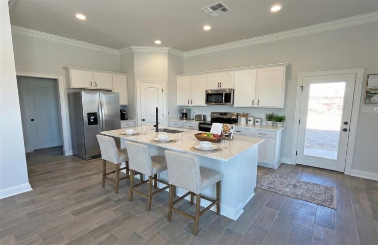 Property Description: Awesome builder rate and closing cost assistance available (restrictions apply)! The OAKSTONE V A in Falcon Bay community offers a 4 bedroom, 2 full bathroom, open design. Features: double vanity, garden tub, separate shower, and a walk-in closet in the primary suite, a kitchen island overlooking the dining area, spacious walk-in pantry, covered front porch, covered rear patio, recessed can lighting, ceiling fans in the living room and primary bedroom are standard, smart connect wi-fi thermostat, smoke and carbon monoxide detectors, a post tension slab, landscaping, architectural 30-year shingles, flood lights, and more! Energy Efficient Features: a kitchen appliance package, low E tilt-in windows, and more!