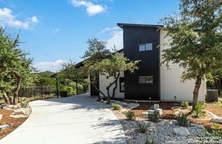 Property Description: Back on the market due to buyer's financing. Priced to sell, under $16,000 below county appraisal value - Motivated sellers. Modern Hill Country retreat with stunning views! This brand-new custom home blends sleek modern design with everyday comfort. Inside, soaring ceilings, an open-concept layout, and a striking black-accented wood-burning fireplace create a stunning centerpiece for the living room. The chef's kitchen boasts stainless steel appliances, quartz countertops, an oversized island, and designer pendant lighting. Large windows and double French doors fill the home with natural light and open to the expansive deck-ideal for entertaining or taking in serene Hill Country sunrises. The main-level primary suite offers a private retreat with contemporary finishes, a walk-in shower, and a double vanity. Upstairs, a secondary bedroom with its own full bath also opens to the upper-level deck, providing comfort and convenience for guests. The loft offers flexible space for a second living area, office, or creative studio-with clerestory windows for beautiful natural northern light and direct deck access to enjoy treetop views. Additional highlights include modern stair railings, a covered carport, and low-maintenance xeriscaping featuring deer-resistant plants such as oleander, cacti, and Texas sage, set among river rock, decomposed granite, and limestone planters. Nestled on a private lot with tree-top views, where you can often spot grazing bucks in the area. This property offers both style and tranquility. Ideal as a full-time residence, weekend retreat, or short-term rental investment.