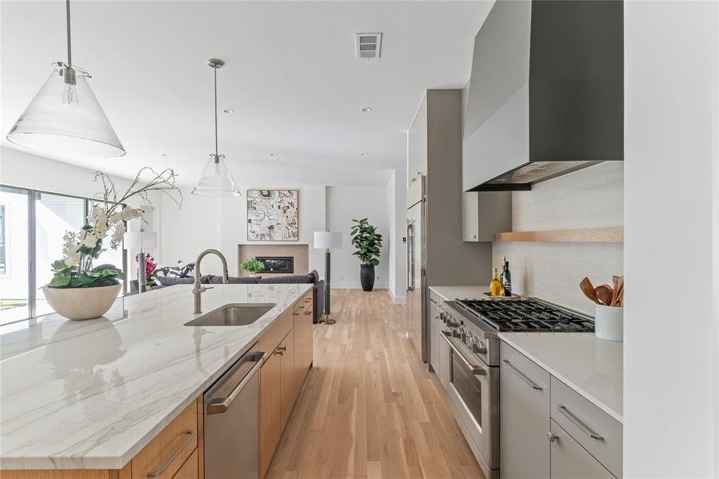 Property Description: Elegantly sophisticated new construction by Avant Group in the heart of Midway Hollow. This modern residence showcases refined design with warm tones and designer curated finishes throughout. The two-story entry creates an immediate sense of openness, leading into the spacious living room with white oak hardwoods, a sleek gas fireplace, and large windows overlooking the backyard. The open kitchen features Mykonos Quartzite atop custom cabinetry, a 48in built-in Café® refrigerator, Café® gas range, dry bar with wine cooler, floating wood shelves with LED lighting, and an oversized walk-in pantry with additional cabinetry and chopping-block prep area. The first-floor primary suite is privately situated and offers a spa-like bath with Ocean Wise Quartzite atop the floating double vanity, freestanding vessel tub, oversized rainfall shower, and a large boutique-style closet. Also on the main level are a guest bed with en-suite, statement powder bath with Bianco Giola Marble countertop & splash, and a covered patio ideal for year-round use. Upstairs includes three en-suite bedrooms and a generous game room with a built-in wet bar. Thoughtful design continues throughout with clean lines, abundant natural light, and elevated fixtures. Additional features include Control4® Smart Home wiring, smart lighting, speaker and camera pre-wiring, piered-slab foundation, full foam insulation, two tankless water heaters, and the Maverick® 1-2-10 Builder’s Warranty for added peace of mind. 3826 Seguin Dr delivers modern elegance, quality construction, and timeless Avant Group craftsmanship in a premier Midway Hollow location.