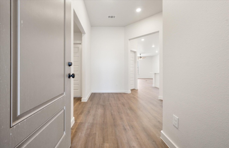 Property Description: Buy NOW and get up to $10,000 Use-It-Your-Way Cash! This beautifully designed home features a classic brick exterior and a covered front entryway, offering both curb appeal and comfort. Inside, luxury vinyl plank flooring flows seamlessly through the open-concept kitchen, living, and dining areas. The kitchen boasts granite or quartz countertops, a spacious peninsula with bar seating, stainless steel appliances, and a large enclosed pantry. Relax in the cozy living room by the corner brick fireplace, adding warmth and charm. The secluded master suite is a true retreat, featuring a drop-in tub, walk-in shower, his and hers vanities, and a walk-in closet with direct access to the utility room. A covered back patio provides a perfect outdoor space to unwind. Premium plumbing and lighting fixtures complete the home's sophisticated design.
