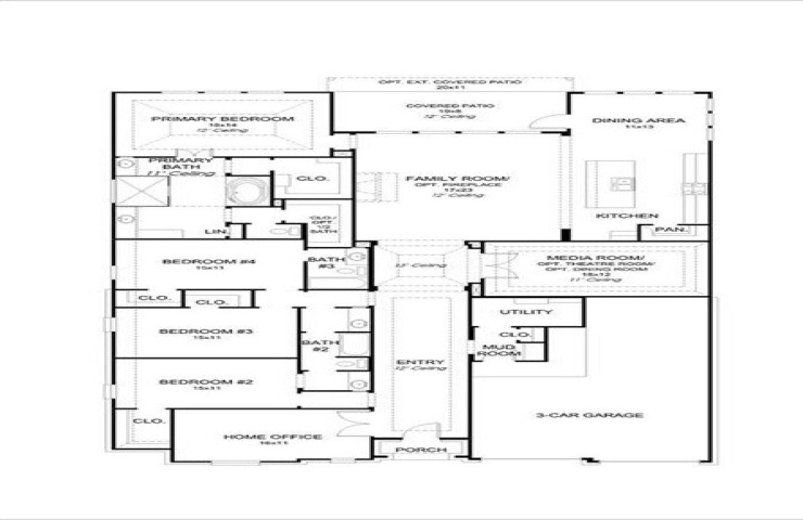 Property Description: Home office with French doors frames the entry. Guest suite with a walk-in closet and a full bath. Media room with French doors. Kitchen features a large pantry, a 5-burner gas cooktop and a large island with built-in seating space. Family room with a wood mantel fireplace and wall of windows. Primary suite with 12-foot coffered ceilings. Double doors lead to primary bath with separate vanities, a freestanding tub, separate glass-enclosed shower, and two walk-in closets. Covered backyard patio. Mud room leads to three-car garage.
