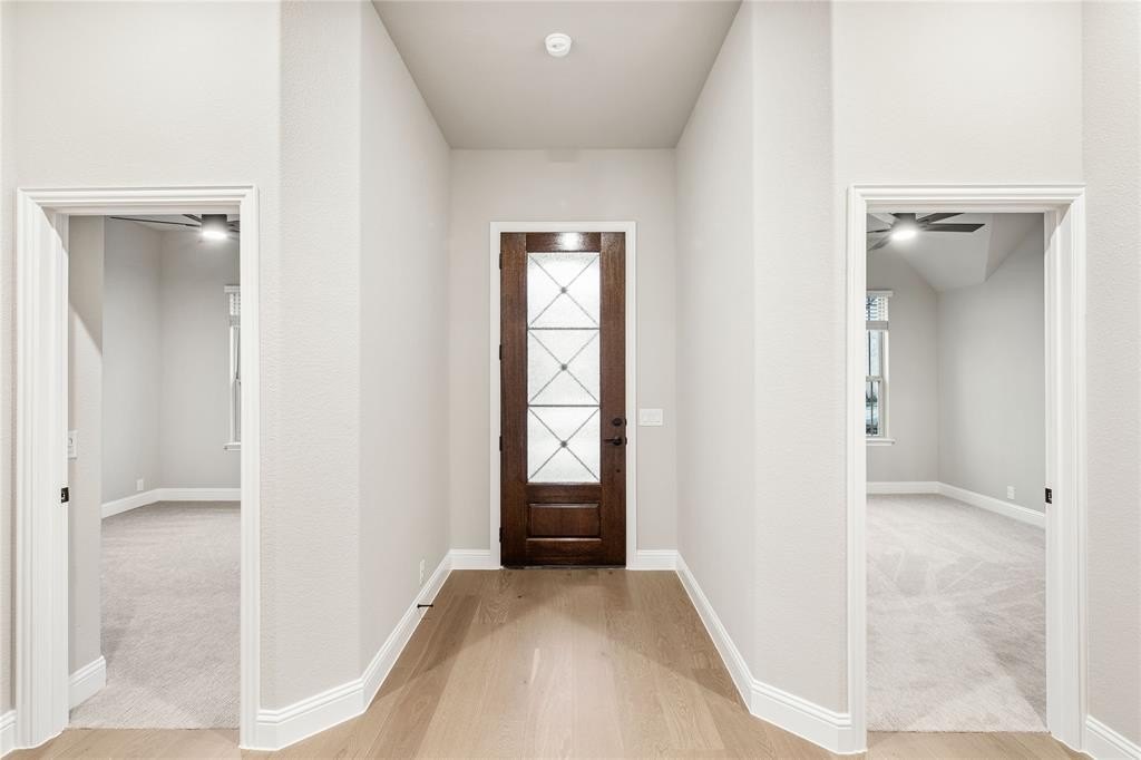 Property Description: NEW! NEVER LIVED IN. Ready Now! Bloomfield Homes brings the Caraway to The Oaks as a single-story design with 4 bedrooms and 3 baths arranged to give the home a naturally intuitive rhythm from front to back. Positioned on a corner homesite near several neighborhood parks, the upgraded white brick exterior pairs with chopped stone accents and a cedar garage door for a crisp, elevated street presence. The interior opens with warm wood flooring that stretches through the main presentation areas, creating continuity as the family room, kitchen, and breakfast space connect in one fluid sweep. In the kitchen, upgraded cabinetry and veined quartz countertops set a refined tone, complemented by an apron-front farm sink, double ovens, a 5-burner gas cooktop, and a decorative backsplash that adds quiet character. The family room’s floor-to-ceiling fireplace introduces texture and height, giving the central living area a strong focal point. The Owner's Suite occupies its own corner, complete with a large walk-in closet and a bath finished in upgraded tile for a clean, modern look - enjoy separate vanities! Bedroom 2 includes an ensuite bath, while the other 2 bedrooms share a well-placed full bath. Additional touches—an 8' front door, tankless water heater, upgraded lighting package, and generous storage throughout—add to the home’s functionality. A covered patio extends the living space outdoors, and The Oaks offers a community pool along with multiple parks that shape a welcoming neighborhood environment. Come by our model home to learn more - open daily!