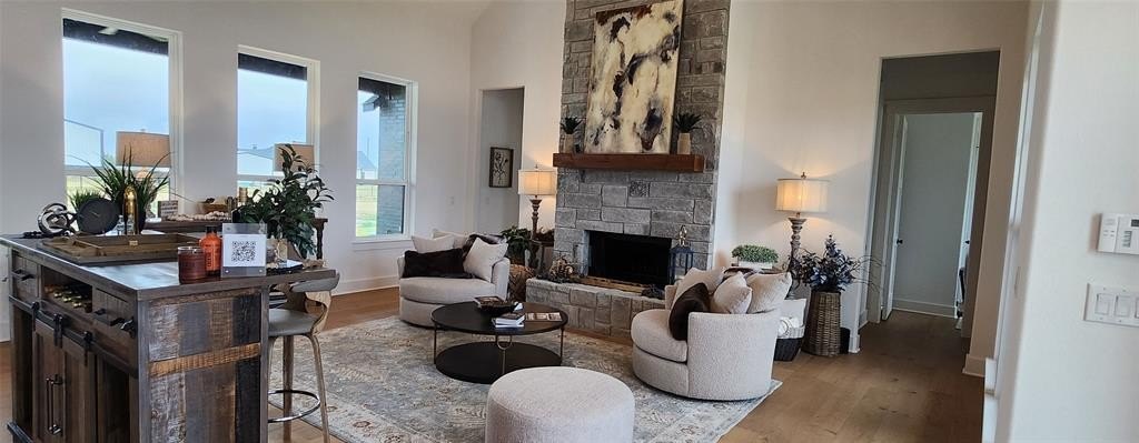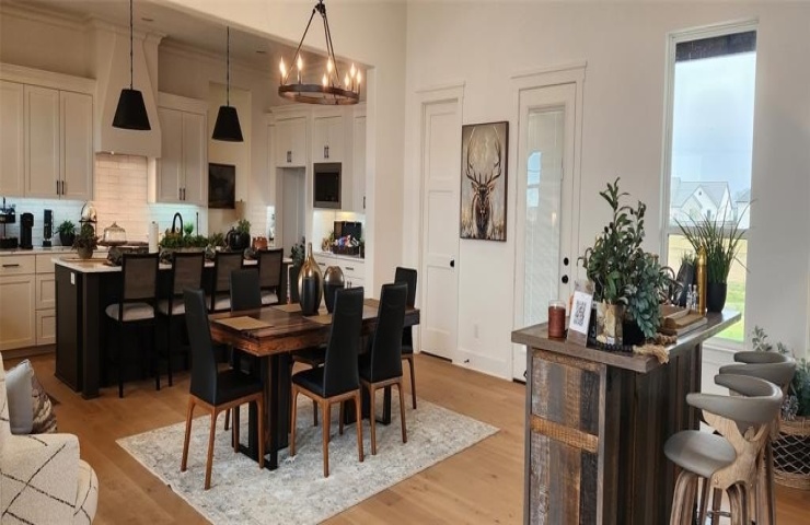This Open Concept floor plan has vaulted ceilings with Stained Beams and a beautiful floor to ceiling Stoned Gas Fireplace. 8' designer Entry Door. The Family Room and Dining areas are combined open spaces, great for entertaining. This Kitchen has an abundance of White Paint Grade cabinets with under cabinet lighting, Quartz counter tops, Subway tile backsplash and built-in Stainless-Steel Whirlpool Appliances. Appliances include Built in Microwave, Dishwasher, Vent-hood and 5 burner Slid-in Range. There is an oversized Island with stainless steel single undermount Trough sink that will serve as a wonderful space for Family Mealtimes. There are many added touches to our Kitchen cabinets being, Soft close doors and drawers with cabinet pulls and knobs, trash pull-out and drawer spaces. Moen Plumbing Fixtures in Matte Black. Matte Black Designer Light Fixtures. Ceiling Fans in Family Room, all bedrooms and back patio. There is an abundance of canned lighting throughout the home. The laundry room is conveniently located to all 3 Secondary bedrooms and has a folding counter and Laundry Sink. All Bathrooms have Designer Ceramic Tile and Quartz Countertops with Undermounts Sinks. Mudroom has a beautiful paint grade Mud-Bench and access to the laundry room and Garage. 8' Solid Core Doors throughout home. Deed Restriction. No HOA. Fencing is specific to Deed Restriction specifications.