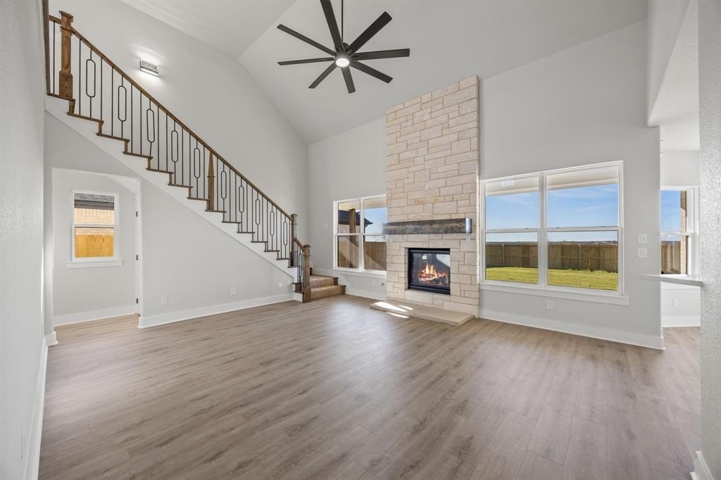 Property Description: This stunning two-story home features a timeless stone exterior, black-framed windows, and a welcoming covered porch. Inside, an open and light-filled layout offers spacious living and dining areas perfect for entertaining. Large picture windows highlight the backyard and bring in abundant natural light. Upstairs, generously sized bedrooms and flexible space provide room for work, play, or relaxation. An oversized two-car garage adds extra storage and convenience. Located in a desirable neighborhood close to top schools, parks, and shopping, this move-in-ready home combines style, comfort, and quality craftsmanship.