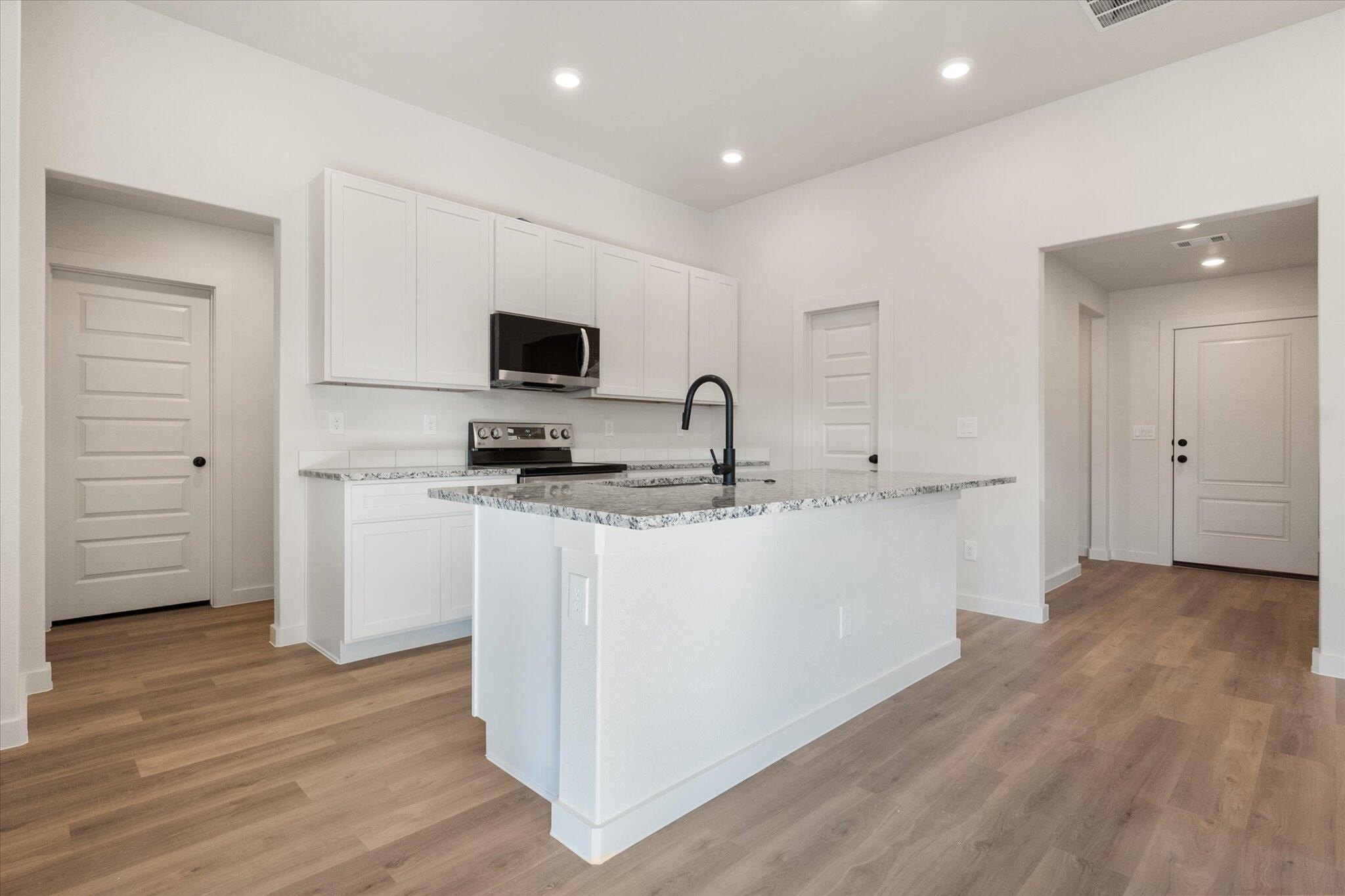 Property Description: Buy NOW and get up to $8,000 USE-IT-YOUR-WAY CASH! This beautiful home features a brick exterior with warm cedar accents and a welcoming covered entryway. Inside, luxury vinyl plank flooring flows through the open-concept kitchen, living, and dining areas, creating a modern and inviting space. The kitchen offers granite or quartz countertops, a spacious island with bar seating, stainless steel appliances, and an enclosed pantry for extra storage. The secluded master suite includes a walk-in closet and double vanity, providing a private and relaxing retreat. Enjoy outdoor living on the covered back patio, perfect for entertaining or unwinding. Premium plumbing and lighting fixtures add a touch of elegance to this thoughtfully designed home.