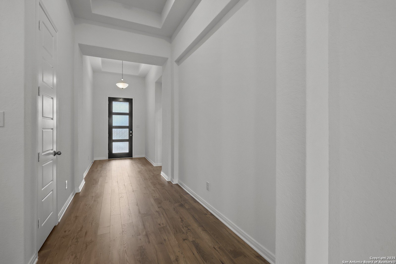 Property Description: Welcome to the beautiful Groveton in the master-planned community of Homestead! The exterior of the home is an absolute delight, featuring a three car side by side bay garage! The dramatic entry features dual-coffered ceilings that usher you past the private guest suite and large study. The kitchen is a chef's dream with upgraded countertops, stainless-steel appliances, and an oversized island. Upgraded cabinets are featured throughout the home, plus the main areas of flooring are adorned with wood and the entire back of the home has been extended to feature a bowed dining breakfast are as well as an extended, bowed master suite! The beautiful primary bedroom connects to the elegant bath with an upgraded walk-in shower and extra-large closet, as well as an extended bowed master suite. The spacious great room opens to the Texas-sized covered patio. Don't miss the opportunity to make this home yours - Schedule your visit today!