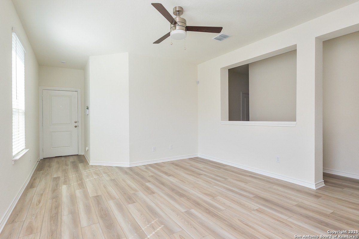 Property Description: This charming, single-story home showcases an open floor plan with 9-ft. ceilings. The modern kitchen features Woodmont Belmont 42-in. upper cabinets, adding sophistication to your culinary space. The primary bath boasts upgraded cabinets, a raised vanity, 42-in. garden tub and separate shower with Daltile Choice tile surround. Finishing touches include dimensional roof shingles, Generation Lighting fixtures, Monte Carlo ceiling fans, a Continental 3-lite entry door, garage door opener, soft water loop, wireless security system and automatic sprinkler system. The back patio provides the ideal setting for outdoor recreation and leisure.