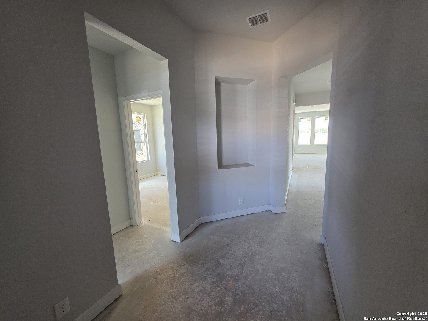 Property Description: This charming one-story home is designed for both comfort and style, making everyday living effortless. The gourmet kitchen, featuring quartz countertops, upgraded cabinetry, and a walk-in pantry, flows seamlessly into the bright and spacious family room, where large windows provide a serene view of the backyard. The secluded primary suite offers a private retreat with an oversized shower, dual vanities, and a generous walk-in closet, creating a space for relaxation and rejuvenation. Two secondary bedrooms share a well-appointed full bath, providing flexibility and comfort for family or guests. Step outside to the covered patio and enjoy the fully landscaped yard with a built-in sprinkler system, perfect for entertaining, unwinding, or simply enjoying life outdoors in a space designed for connection and ease. This home features design selections thoughtfully curated by our professional studio team. Each finish, from flooring and cabinetry to countertops and special touches, is chosen with care to create a cohesive and beautifully balanced look. Guided by timeless design principles and inspired by modern lifestyles, the result is a home that is both stylish and welcoming from the moment you step inside. This home is located in Saddlebrook Ranch, a master-planned community in the charming city of Schertz-named one of CNN/Money's top small towns. Enjoy easy access to I-35, premier shopping, dining, and Randolph Air Force Base. Planned amenities include a sparkling pool and playground, perfect for family fun. With the highly regarded Schertz-Cibolo-Universal City School District nearby, Saddlebrook Ranch offers the ideal blend of community, convenience, and small-town charm.