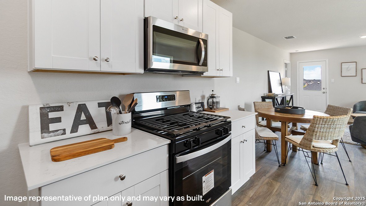 Property Description: The Atlanta is a charming one-story home featured at Avenida in Converse, TX. Featuring 2 classic front exteriors, this 3 bedroom, 2 bathroom home also offers 1156 square feet of living space and a 2-car garage. A front porch (per plan) welcomes you into the home and opens to the gourmet kitchen which includes quartz counter tops, quality cabinets, stainless steel appliances and an open concept floorplan with the kitchen flowing seamlessly into the dining room and living room. The main bedroom has an attractive ensuite bathroom that features a quartz vanity countertop and quality cabinetry. Enjoy additional storage with a spacious walk-in closet located off of the primary bathroom. Your secondary bedrooms all feature quality carpet flooring and a closet, and can be used as bedrooms, offices, work out spaces or other bonus rooms. The possibilities are endless with The Atlanta floor plan. Additional features include sheet vinyl flooring in entry, living room, and all wet areas, quartz counter tops in all bathrooms and HOME IS CONNECTED base package. Using one central hub that talks to all the devices in your home, you can control the lights, thermostat and locks, all from your cellular device.