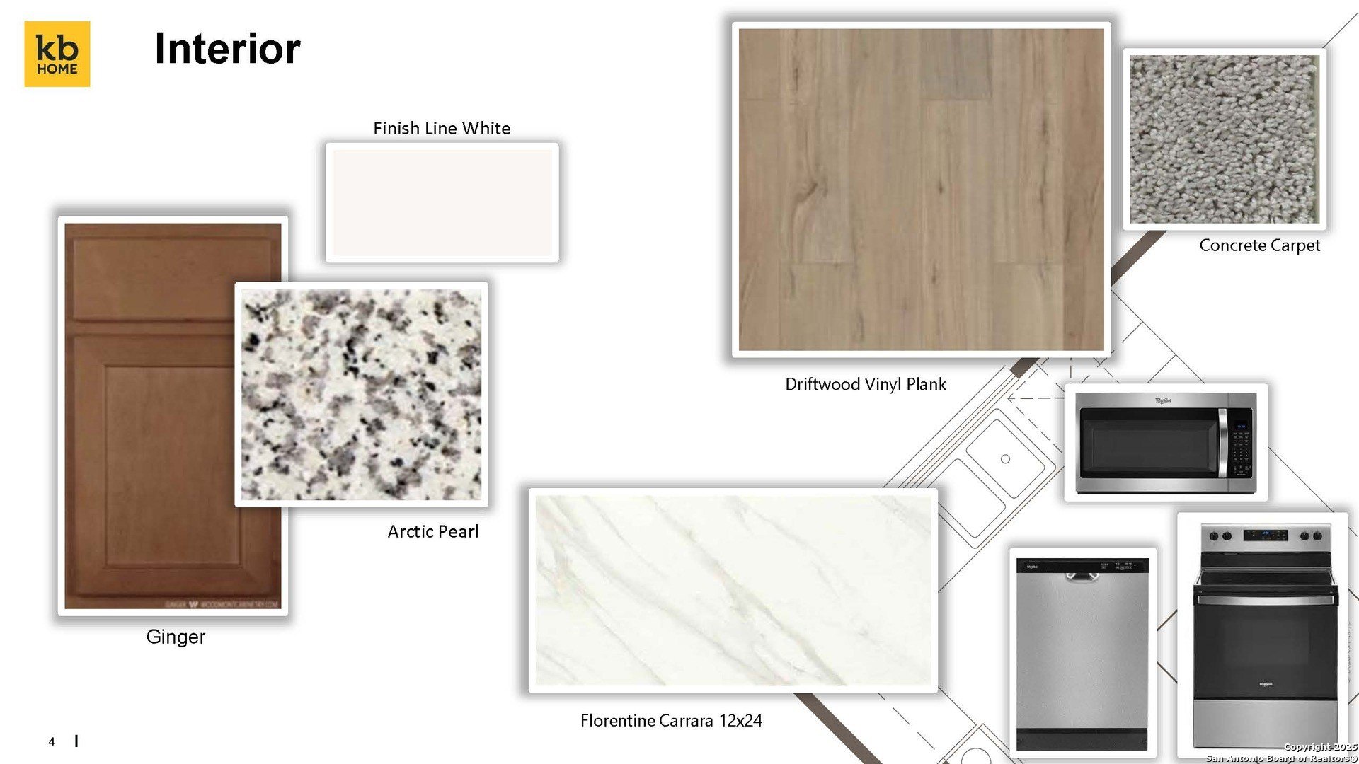 Property Description: This stylish home features 9-ft. first-floor ceilings and a bright, open layout designed for comfort. The kitchen is equipped with Whirlpool stainless steel appliances, Woodmont Cody 42-in. upper cabinets, a Daltile tile backsplash, extended breakfast bar, and elegant Arctic Pearl granite countertops. The primary bath offers a raised vanity, upgraded cabinets, and a 42-in. shower with Daltile tile surround. Durable vinyl plank flooring enhances the bathroom, kitchen, and living room. Thoughtful details include a Carrara-style entry door, Kwikset Polo interior hardware, soft water loop, and a wireless security system. Outside, enjoy a fully sodded yard and automatic sprinkler system.