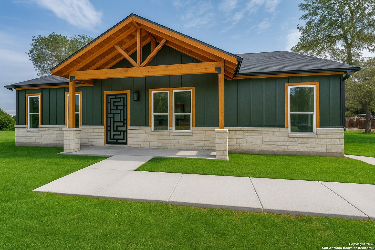 Property Description: Welcome to this new custom-built 3 bedroom, 2 bath home, ideally situated on a spacious .42-acre lot in Sandy Oak's Waterwood Subdivision.The home immediately impresses with its unique front door imported from Mexico, setting the tone for the thoughtful craftsmanship and custom details throughout. Inside, the open-concept design features towering 12-foot ceilings in both the living area and kitchen, creating a bright and expansive atmosphere. The kitchen is a chef's dream, boasting sleek granite countertops and modern fixtures, perfect for cooking and entertaining. Beautiful accent walls add character and warmth, blending perfectly with the home's modern aesthetic. All appliances are included! Outside, the property is enhanced by stylish step lights and elegant soffit lighting, offering both curb appeal and a welcoming glow. This home is a perfect blend of luxury and functionality, with ample space for indoor and outdoor living.USDA and $0 Down Programs available through our preferred lender. Seller is offering $10,000 in closing concessions!!Contact your realtor today to add it to your list of showings