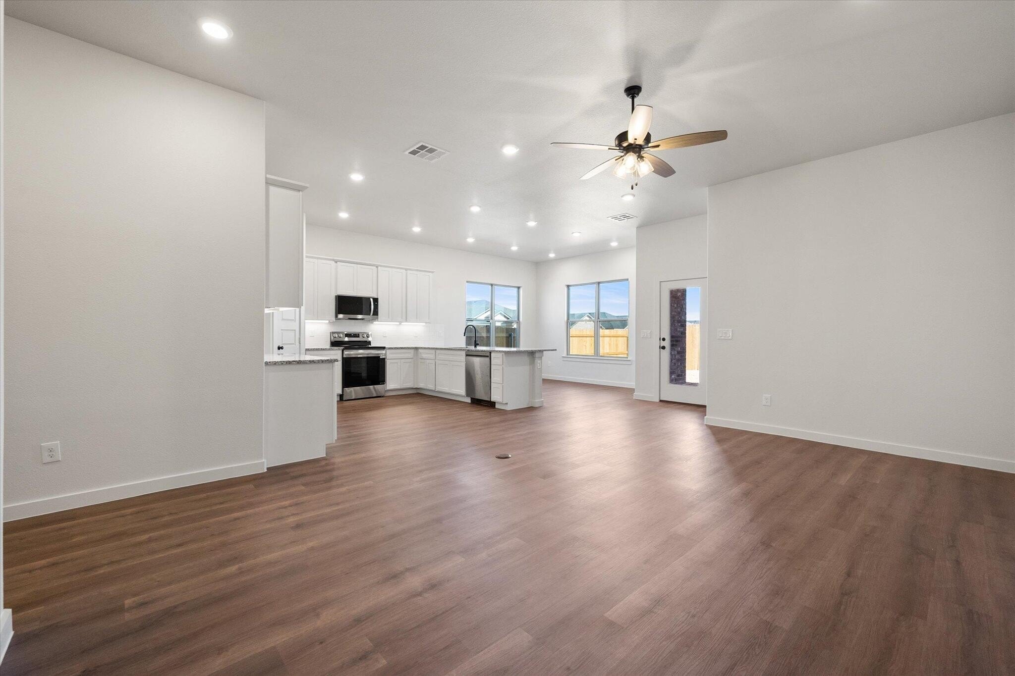 Property Description: Seller has already reduced the price by $20,385, giving buyers instant equity and unmatched value. Buy NOW and get up to $10,000 Use-It-Your-Way Cash! This beautiful home features a brick exterior complemented by a stone entryway. Inside, luxury vinyl plank flooring flows throughout the open-concept kitchen, living, and dining areas. The kitchen includes granite or quartz countertops, a spacious peninsula with bar seating, stainless steel appliances, and a large enclosed pantry. The cozy living room is centered around a corner brick fireplace. The secluded master suite offers a drop-in tub, walk-in shower, his and hers vanities, and a walk-in closet. Enjoy the outdoors on the covered back patio. Premium plumbing and lighting fixtures complete this elegant home.