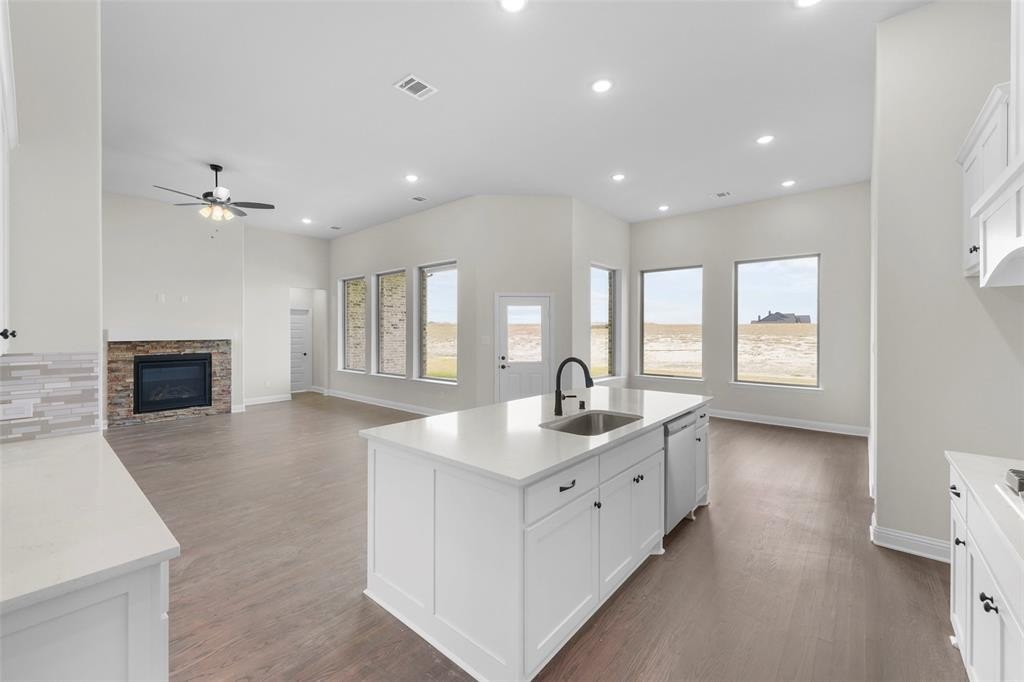 Property Description: Surrounded by wide-open Texas skies, this single-story residence brings together generous living spaces, refined finishes, and a floor plan that adapts beautifully to everyday life. With 5 bedrooms, 4.5 baths, and nearly 2,900 sq ft, the home unfolds in a way that feels both expansive and intimately connected. The main living area sits at the center of the layout, anchored by a sleek gas-log fireplace and tall ceilings that add volume without sacrificing warmth. Natural light filters in from multiple angles, highlighting the blend of wood, tile, and thoughtful architectural detail throughout.