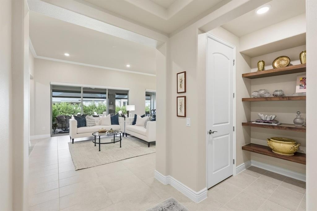 Property Description: Better than new! Experience refined living in this beautifully upgraded Belmont model with a serene, backyard setting, & views of a tranquil pond. Two bedrooms, 2.5 bathrooms, spacious den & relaxing backyard with covered (26 x 10) patio & built-in natural gas firepit for cozy evenings. Thoughtfully designed with comfort & style in mind, this home features stacking glass patio doors that open to the covered patio with retractable screens, creating a seamless indoor-outdoor living experience. Inside, the home showcases custom built-in cabinetry in the den, living room, & hallway—providing both elegance & exceptional storage. The Taj Mahal quartzite countertops, custom window treatments, & designer stone dining area chandelier add sophistication. Home chefs will appreciate the beautifully appointed kitchen & open design, providing a wonderful space for entertaining. You will want to make the Primary Suite your restful retreat, while enjoying the tray ceiling, crown molding, large (8.5 x 11) walk-in closet with custom cabinetry, & curbless shower for ease & convenience. Every possible builder extension was selected during construction, maximizing square footage, functionality, & livability. Top grade flooring, custom floating shelves & elegant yet comfortable interior design are just a few features you must see. Surrounded by professional landscaping & infused with architectural detail throughout, this home offers a rare opportunity to enjoy stylish living in a beautifully finished & meticulously maintained space. The 2.5 car garage includes a built-in workbench with storage, providing plenty of space for your projects. Convenient tankless, instant hot water. Robson Ranch is a 55+ Active Adult Community with Golf, Tennis, two Swimming Pools, Fitness Center & much more. There is something for everyone ! It's time to start your next adventure! * All information is deemed reliable but is not guaranteed and should be independently verified *